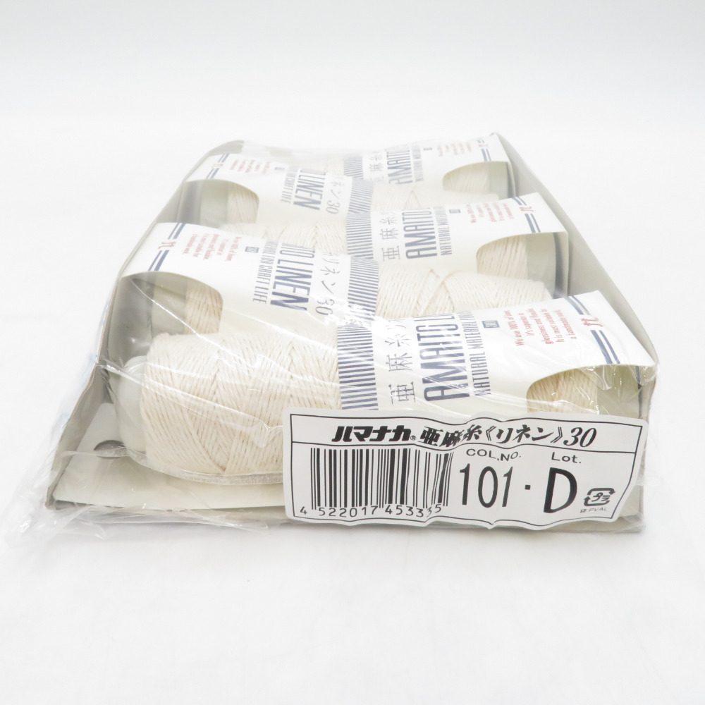 | ハマナカ 毛糸 亜麻糸リネン30 5玉 101番色 白色 1玉30g巻 約50m 亜麻糸 リネン100% 日本製 並太 春夏毛糸 未使用品 |