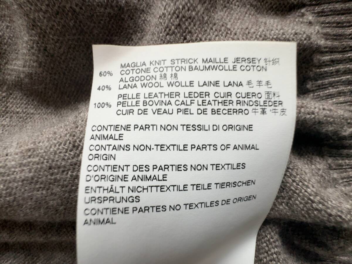 マルジェラ10|グレージュ×黒|エルボーパッチ|コットン×ウール|ニットカーディガン|レザー|S