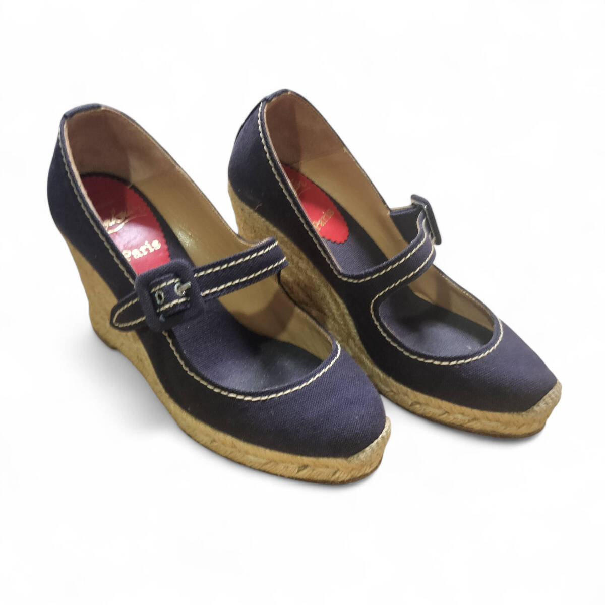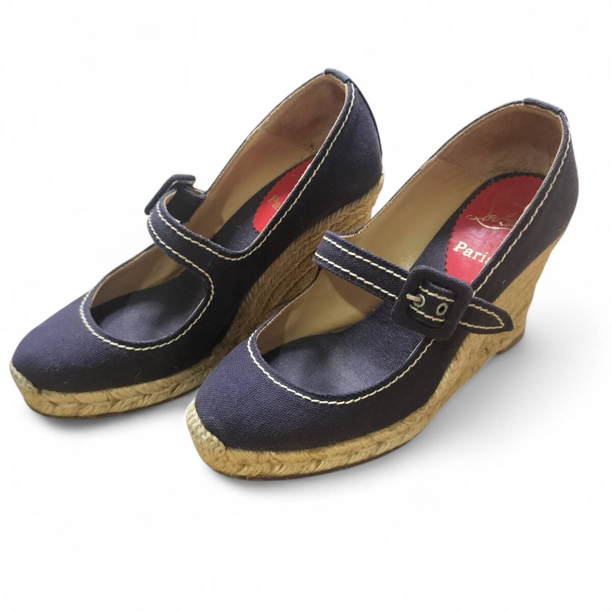 Christian Louboutin クリスチャンルブタン パンプス エスパドリーユ ウエッジソール 厚底 ストラップ 36 23cm相当 ブルー