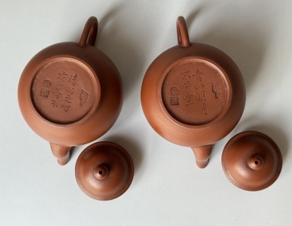 『東京株式会社』 旧家蔵出 中国紫砂壺 [孟臣ペア] 茶道具 時代物 容量:100cc ZA509
