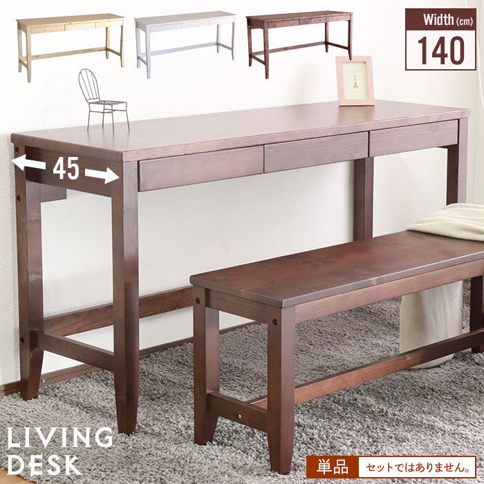 | 商品名 | デスク 天然木 幅140 奥行45 シンプル 木製 デスク 引出し 収納 A4 机 リビング 学習 ナチュラル ホワイト M5-MGKTIR00057WH |