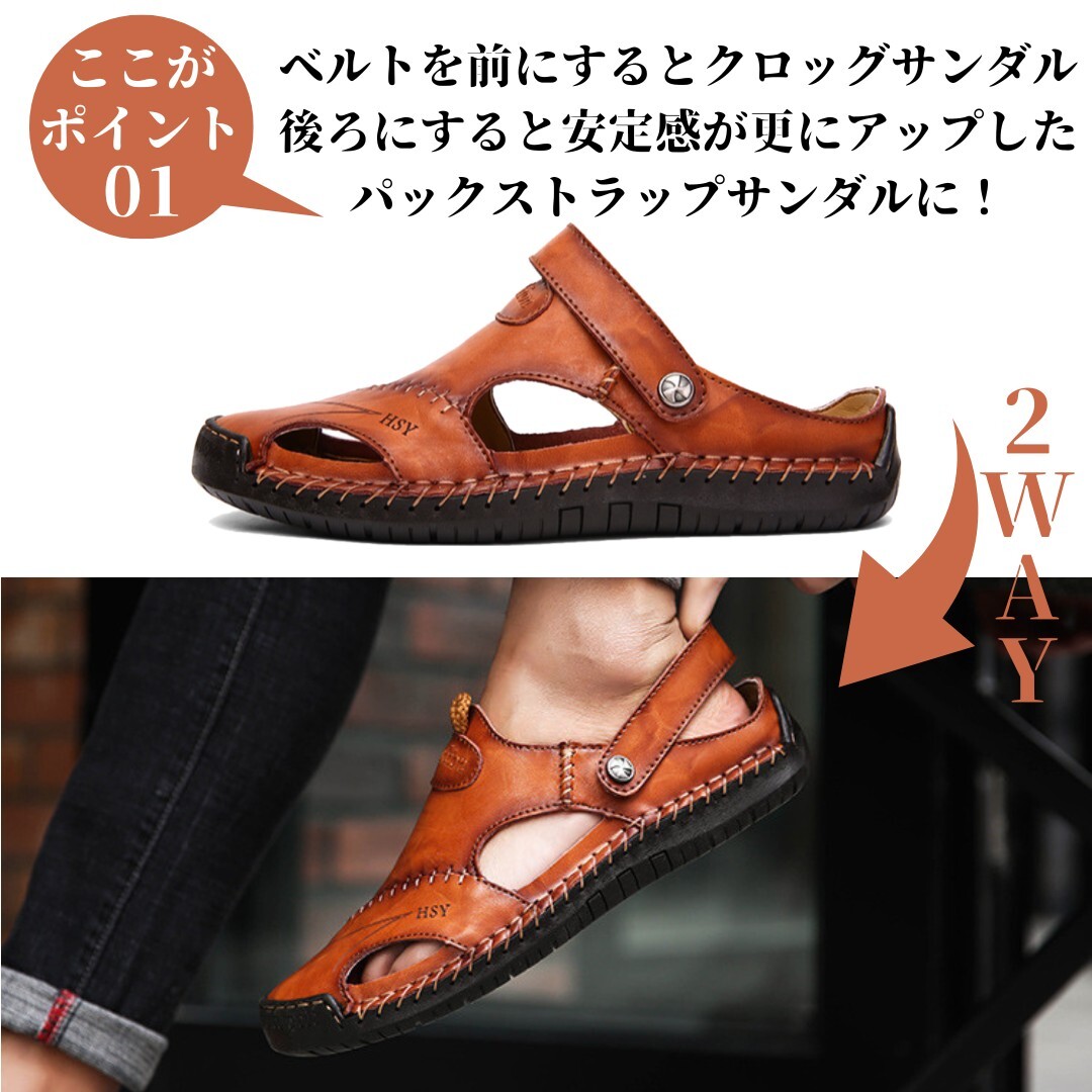 サンダル メンズ レザー 2way 本革 おしゃれ 柔らかい 滑り止め 革靴