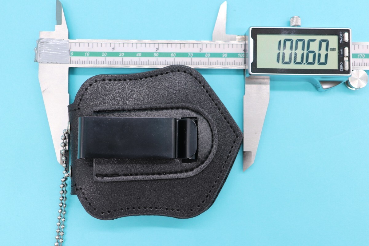 レザーケースつきで、クリップがついており、ベルト等につけられます