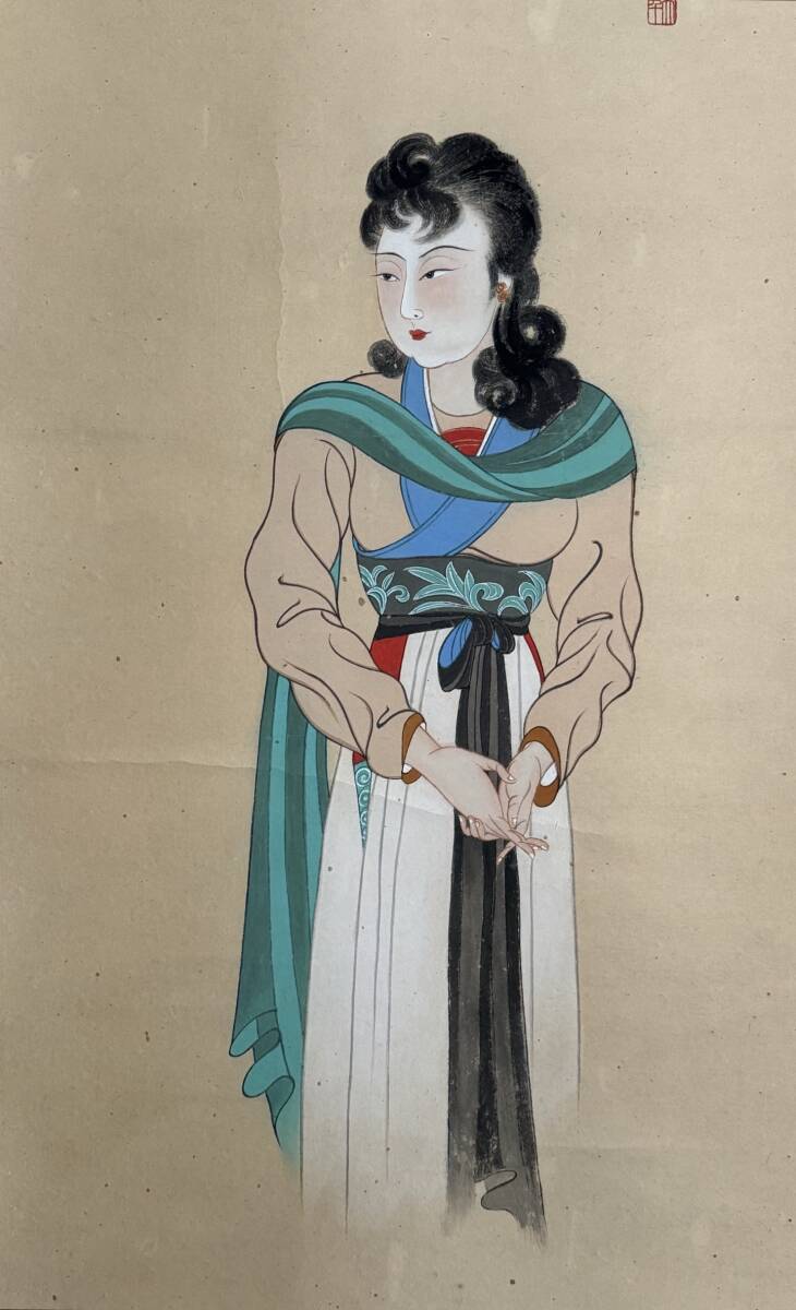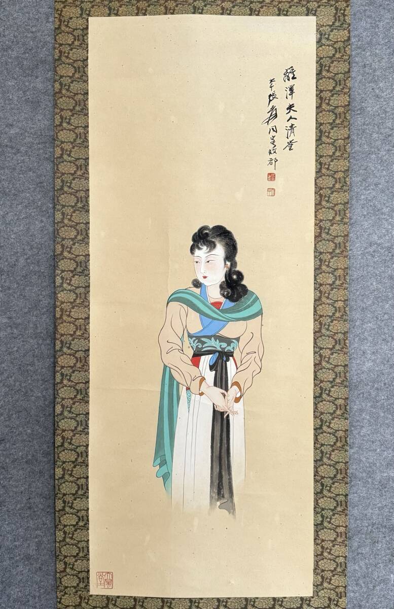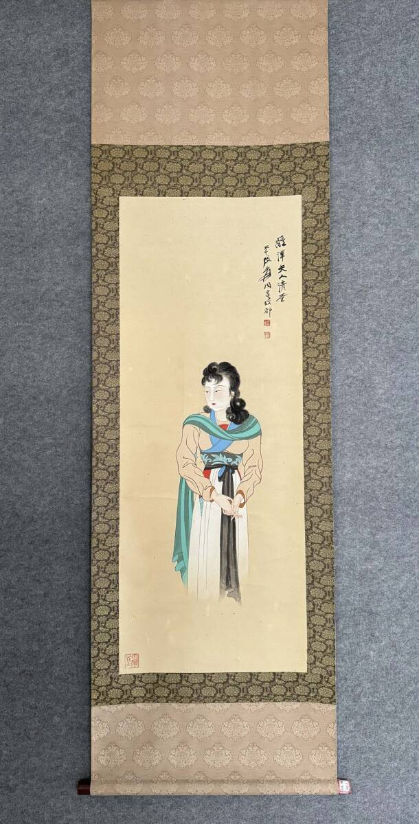 『三希堂』 中国画 古美術 [張大千人物図] 掛け軸 真筆逸品 肉筆保証 中心尺寸107X41.5cm ABC707