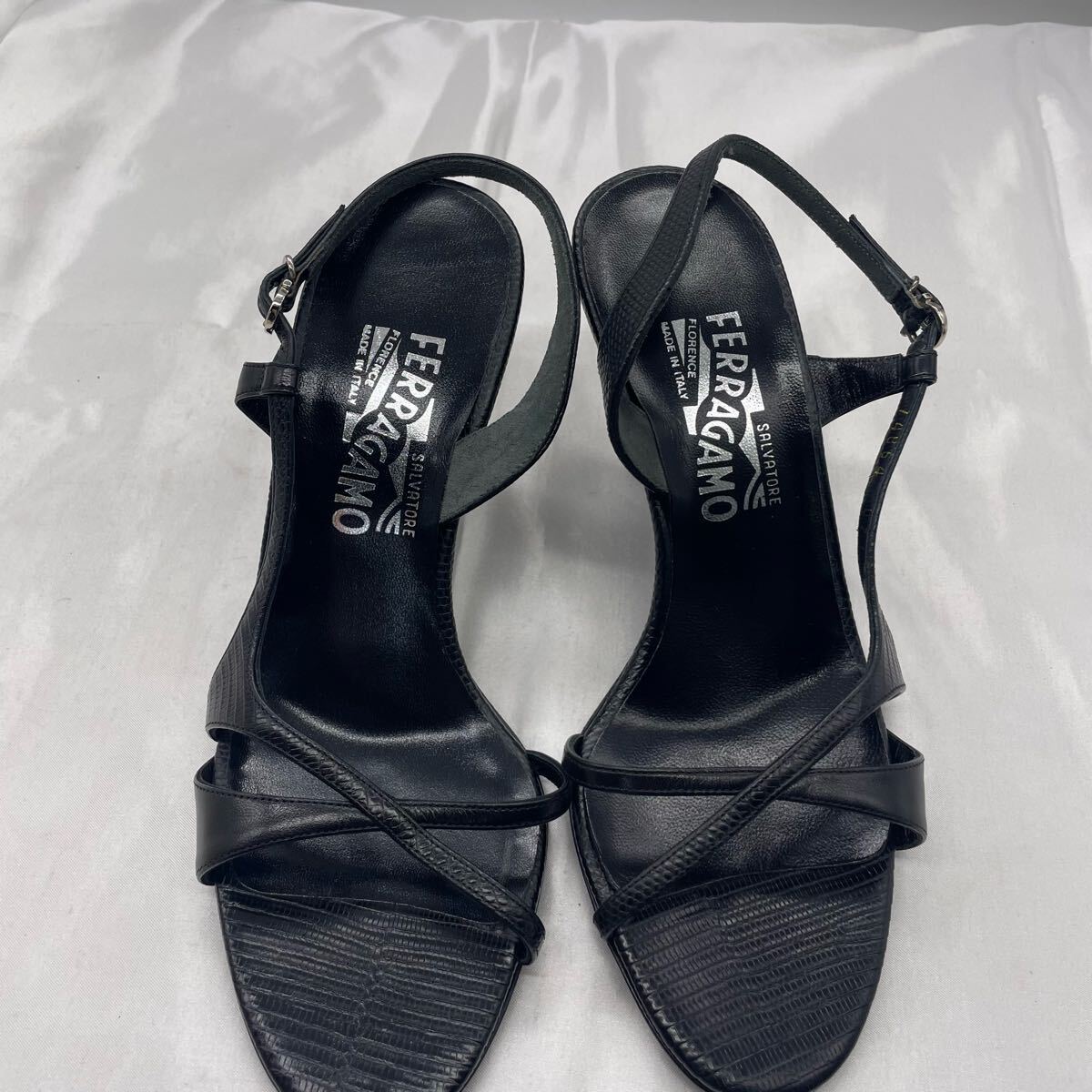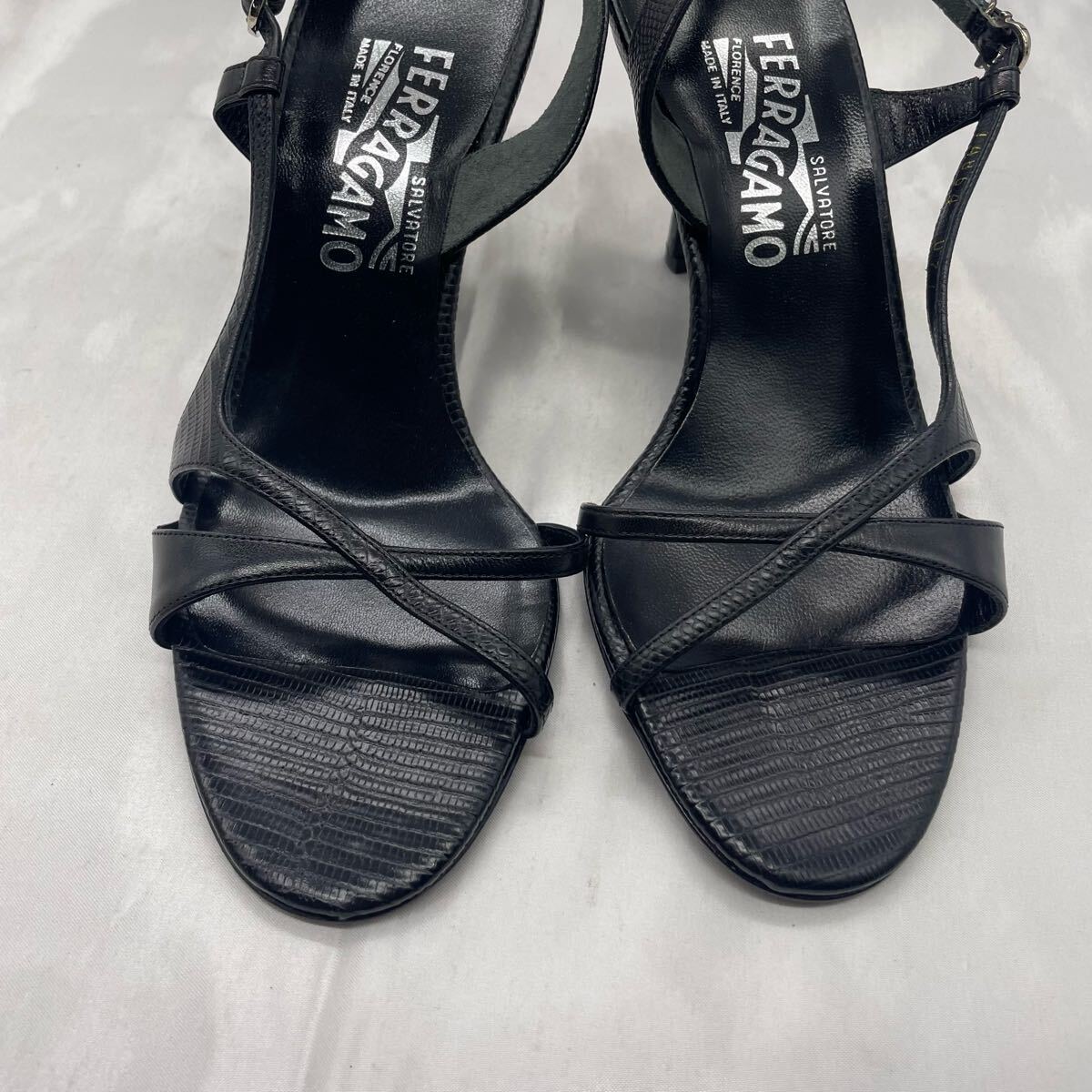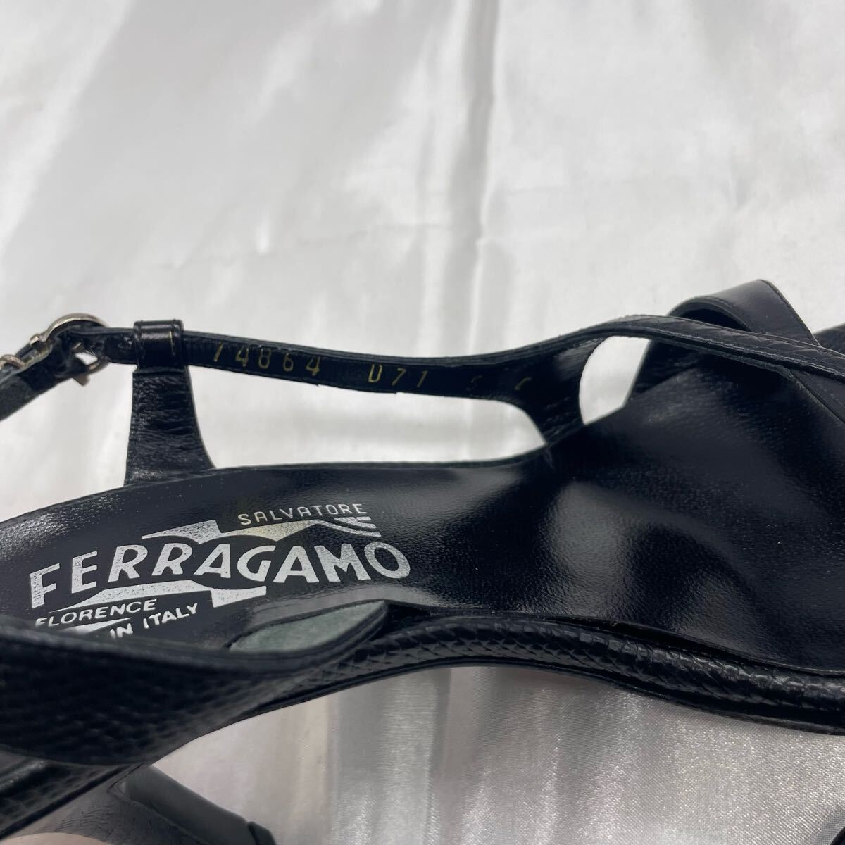 【美品】Salvatore Ferragamo サルヴァトーレ フェラガモ サンダル ブラック レザー サイズ6 ヒール約7cm 保存袋付き