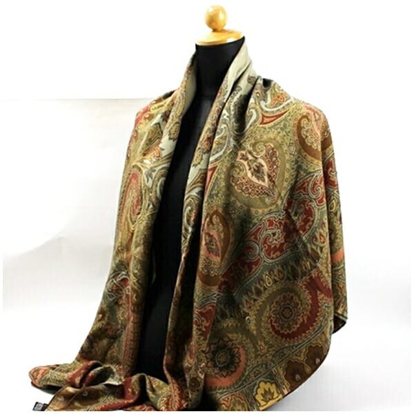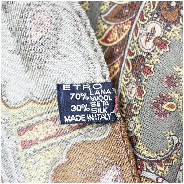 商品名 | エトロ ウール シルク 大判ストール カーキ×ブラウン 中古 ABランク ETRO |