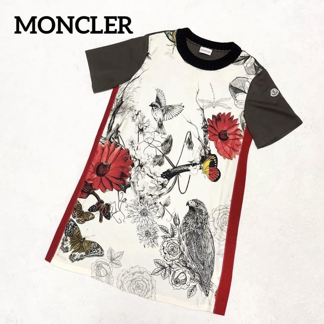 1円~ 美品 MONCLER モンクレール ワンピース レディース S シルク 羊毛 蝶 鳥 花柄