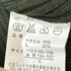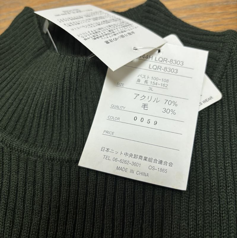 サイズは3Lで、ゆったりとしたフィット感が特徴です。
