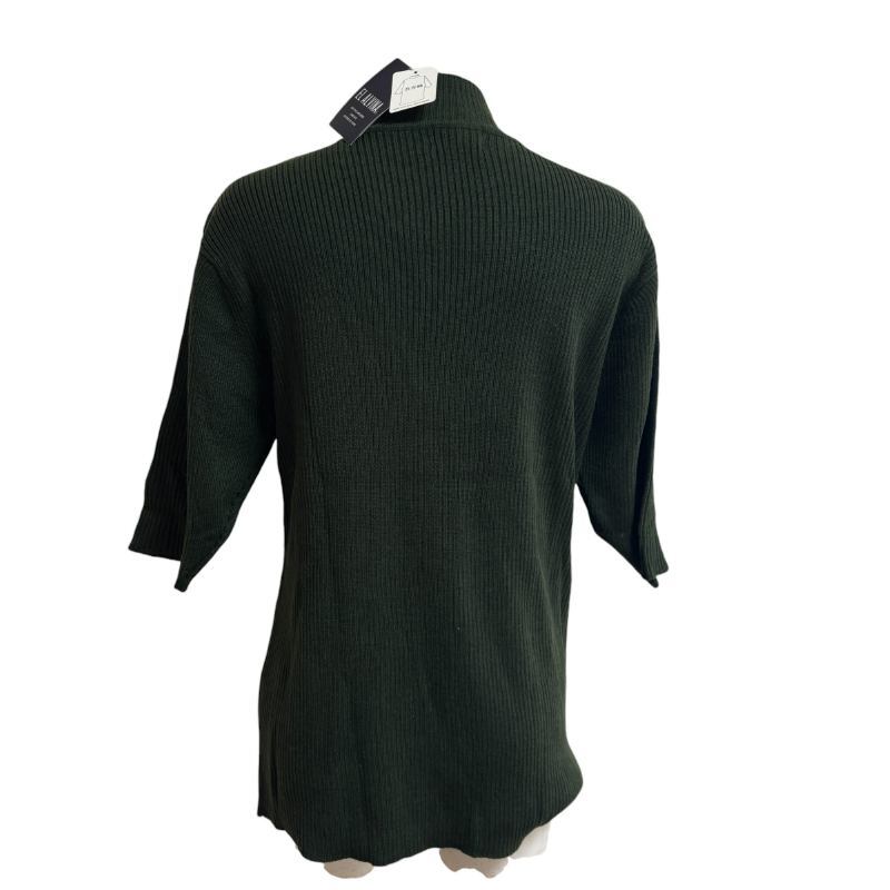 リブ編みの素材が程よく体にフィットし、女性らしいシルエットを引き立てます。