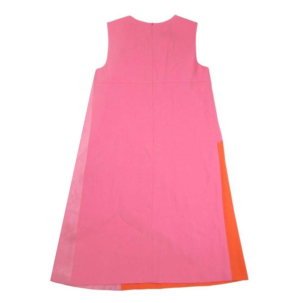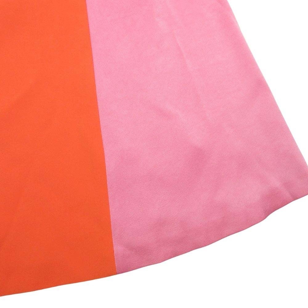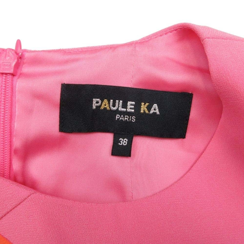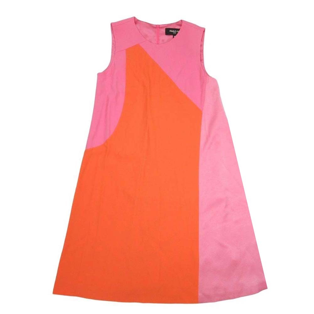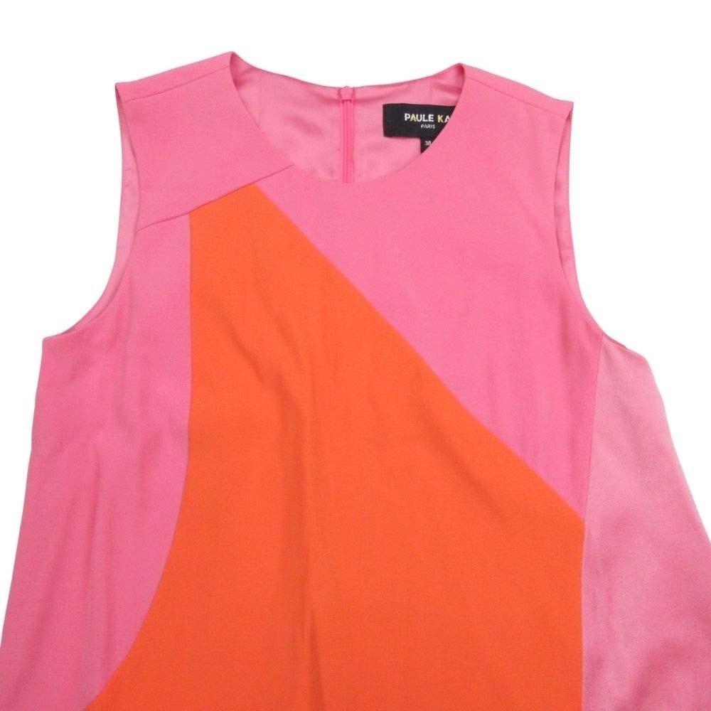 新品同様 PAULE KA ポールカ ノースリーブ Aライン ひざ丈 ワンピース シフォンドレス バイカラー 38 ピンク オレンジ