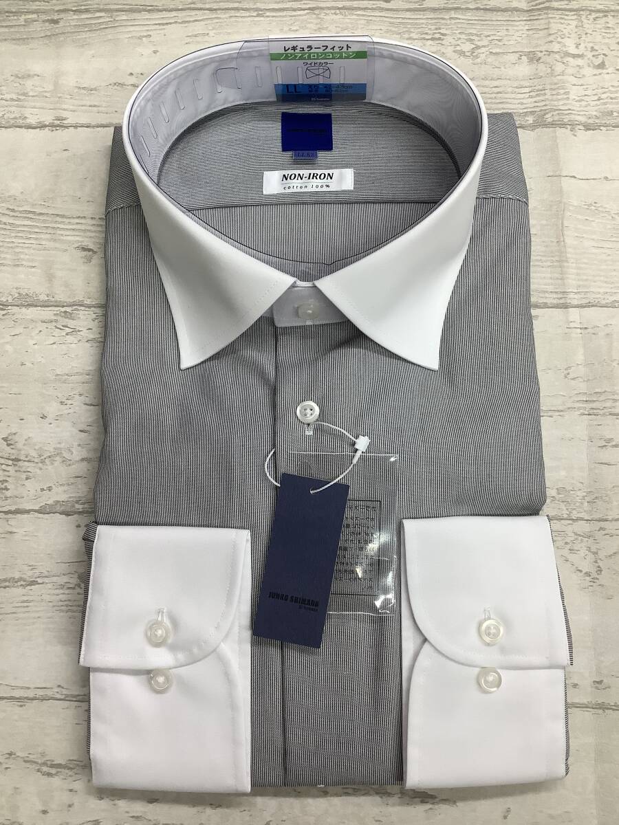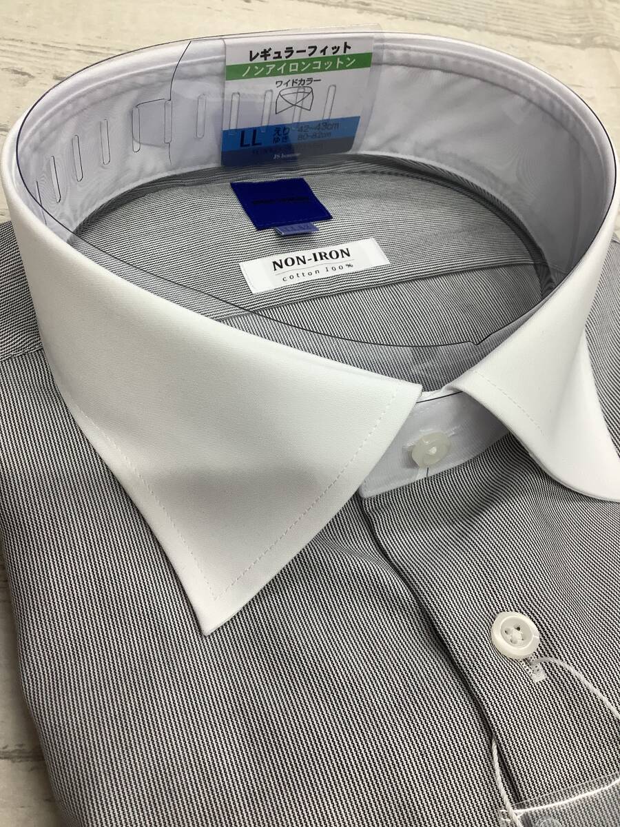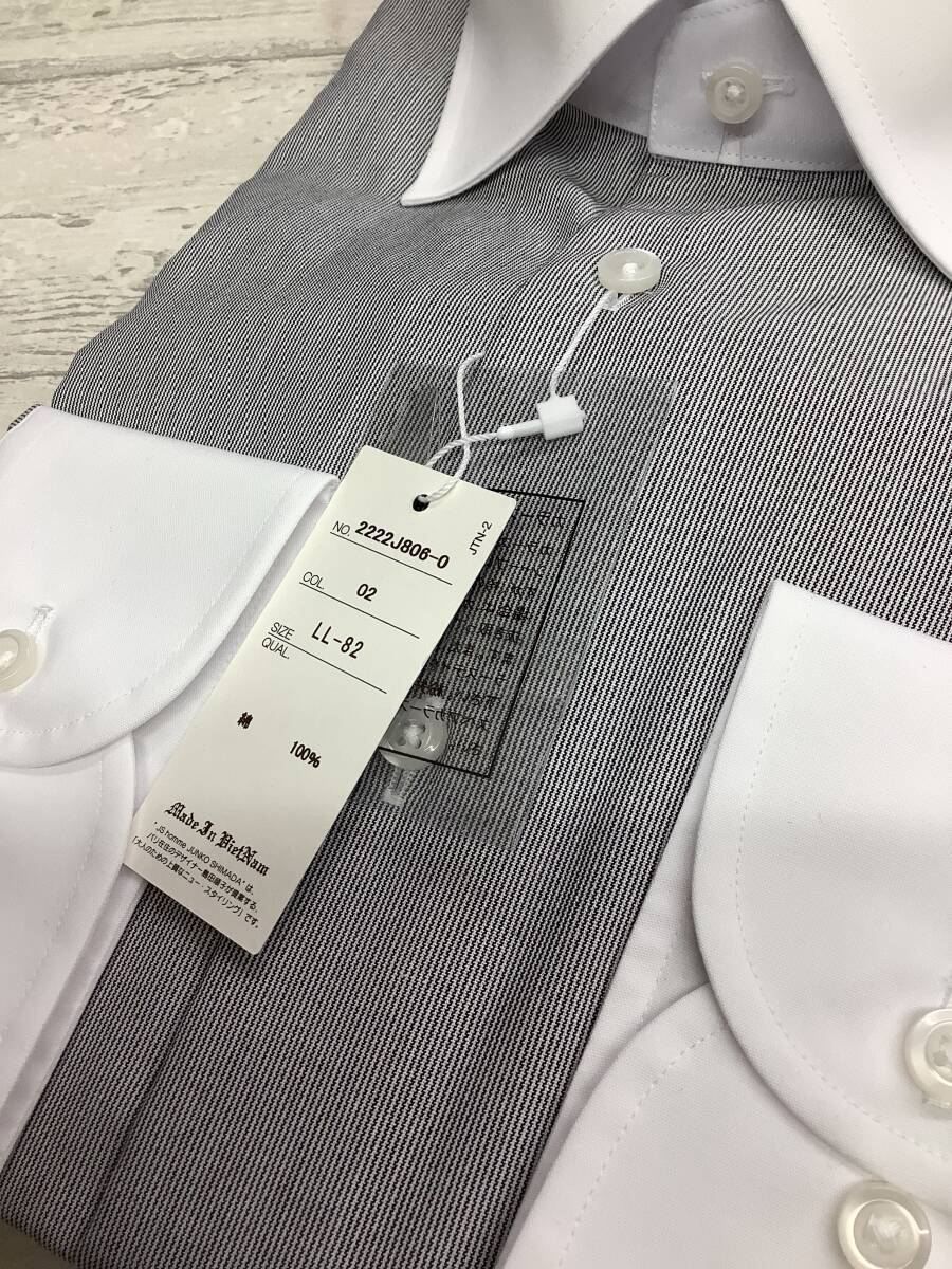 新品未使用★クレリックカッターシャツ ★43-82 ★LLサイズ 定価5,990円の品 ★綿100% ★ノンアイロンコットン グレーストライプ