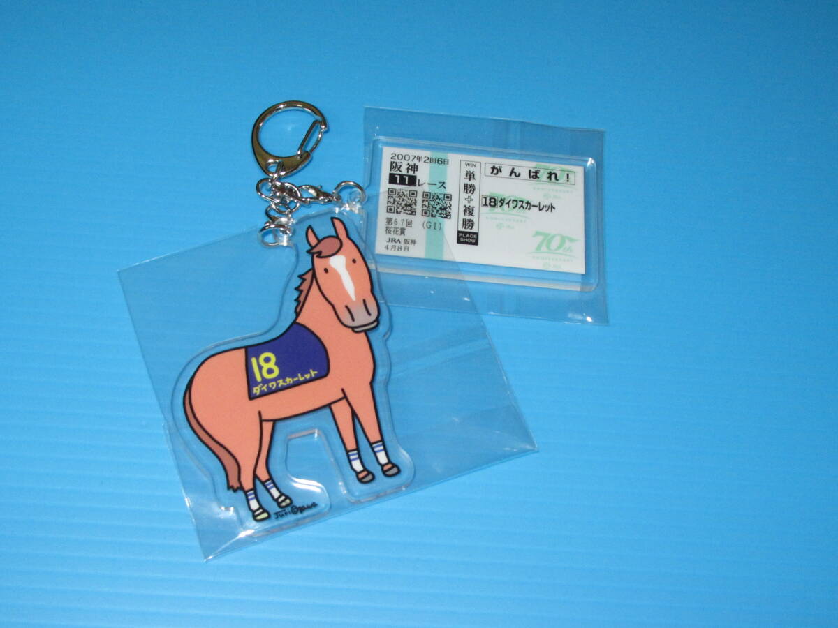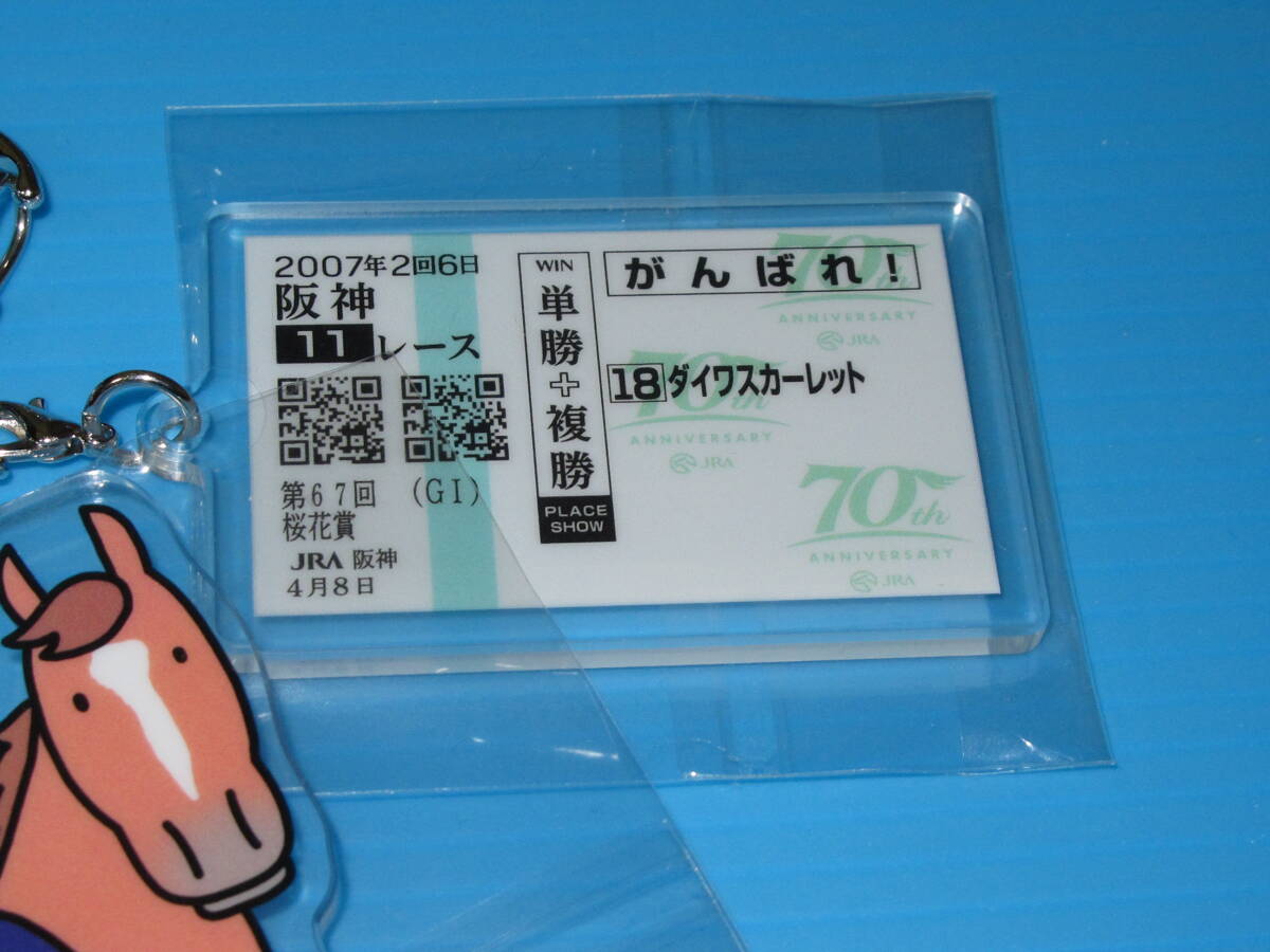 匿名送料無料 ★非売品 ダイワスカーレット アクリル製 キーホルダー 第67回 桜花賞 GⅠ 優勝 がんばれ馬券 ☆JRA 阪神 2007.4.8 安藤勝己