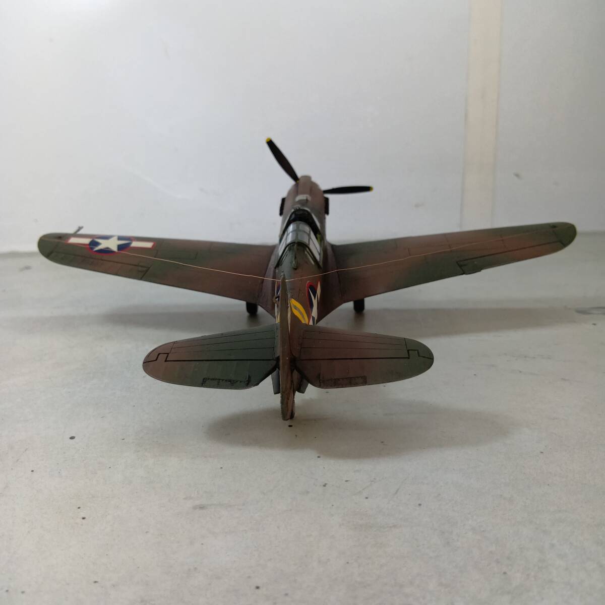 | 塗装済み完成品_ヒカリ工房製_P-40シリーズ_07)ハセガワ_1/48_09659_カーチス_P-40K_ウォーホーク(ループアンテナ装備)_アメリカ第10空軍第51戦闘グループ第26戦闘スコードロン_エドワード・M・ナルメイヤー少佐乗機_1943年12月_中国・昆明基地_送料込みです。 |