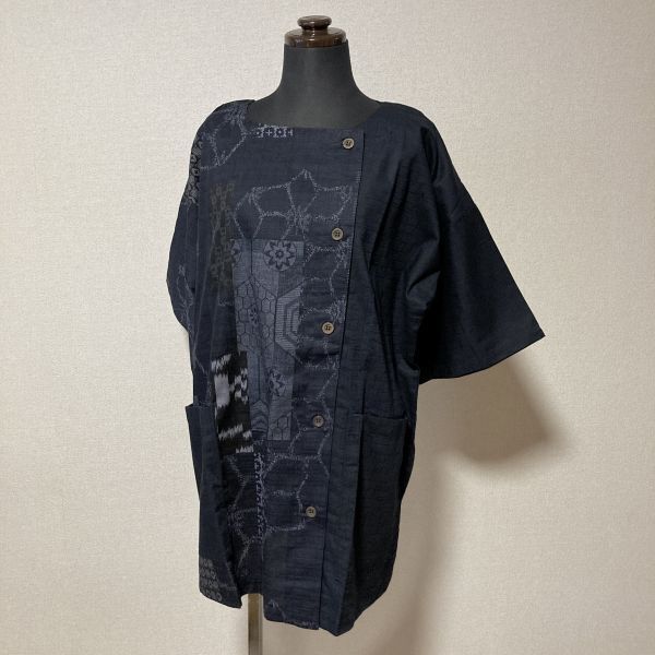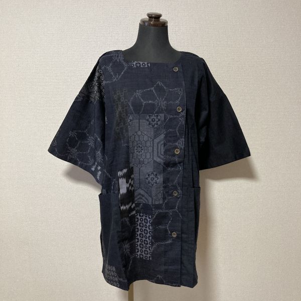 送料込み 未使用に近い■らくぎ/夏原商事 コットン素材 和柄 スモック/チュニック リラックスウェア 日本製 レディース 大きいサイズLL~3L