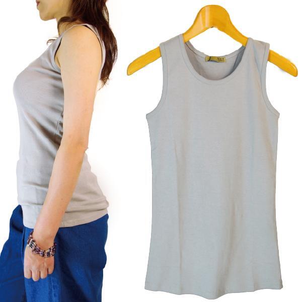 LL グレーベージュ タンクトップ 綿 ノースリーブ レディース ロング 無地 新品