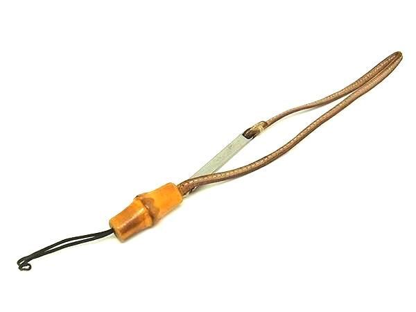 GUCCI グッチ バンブー レザー ストラップ キーホルダー チャーム メンズ レディース ブラウン系 DF9737