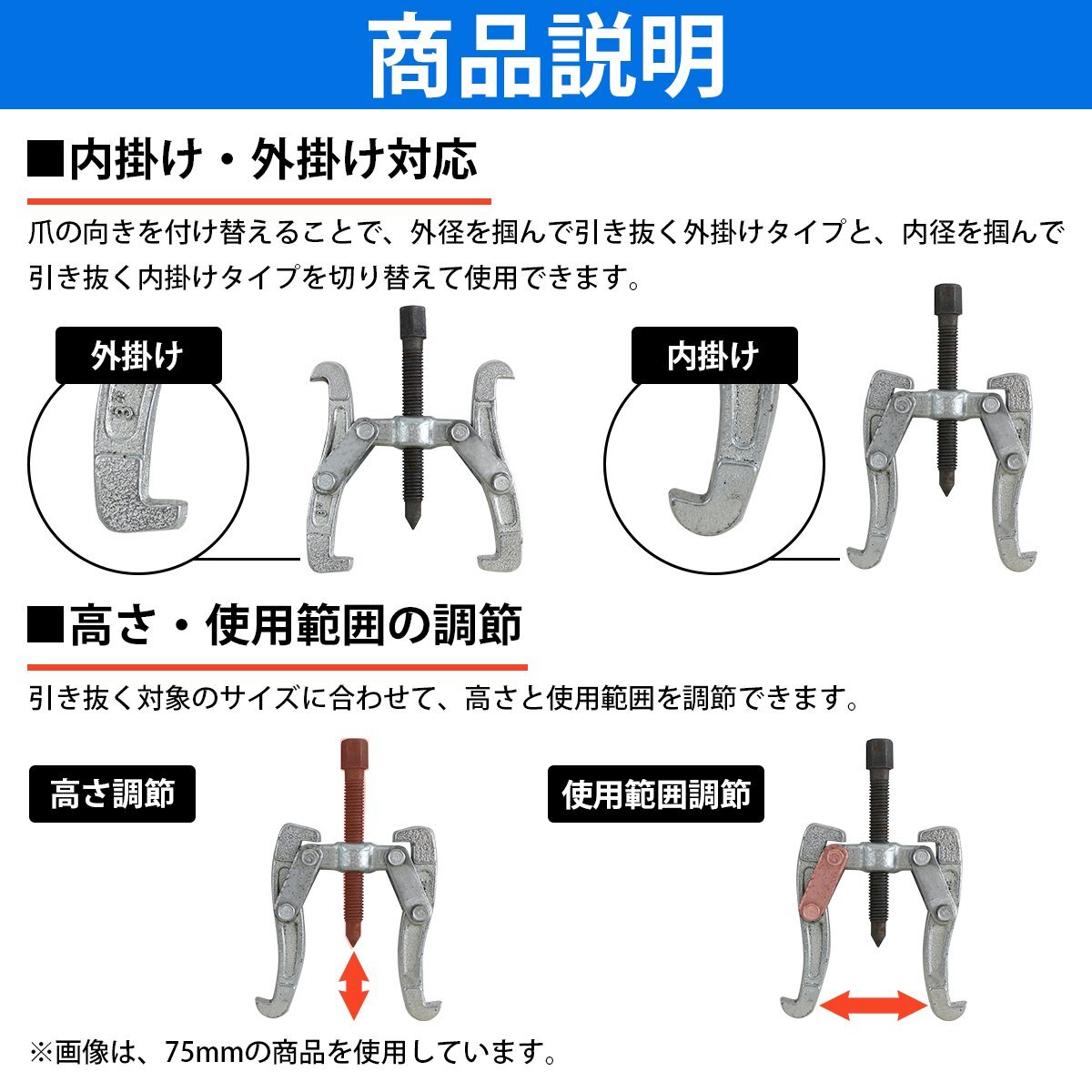 ギヤプーラー 2本爪 50mm-100mm ベアリングプーラー 内掛け 外掛け ギア プーラー プーリー 脱着 交換 ベアリング 引き 抜き