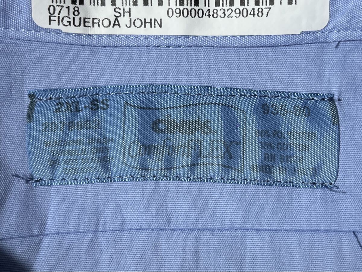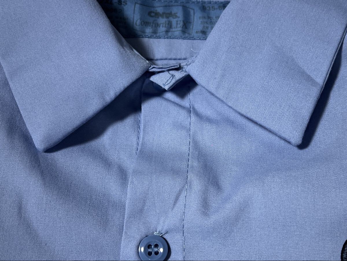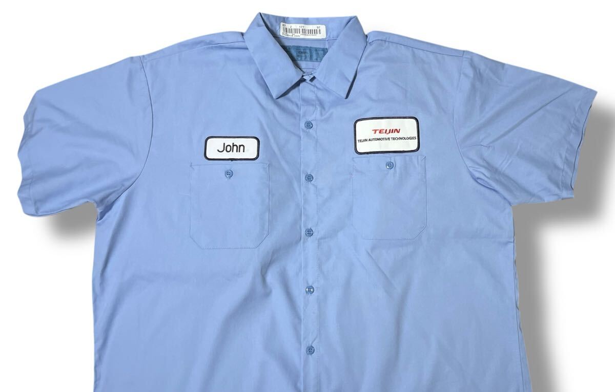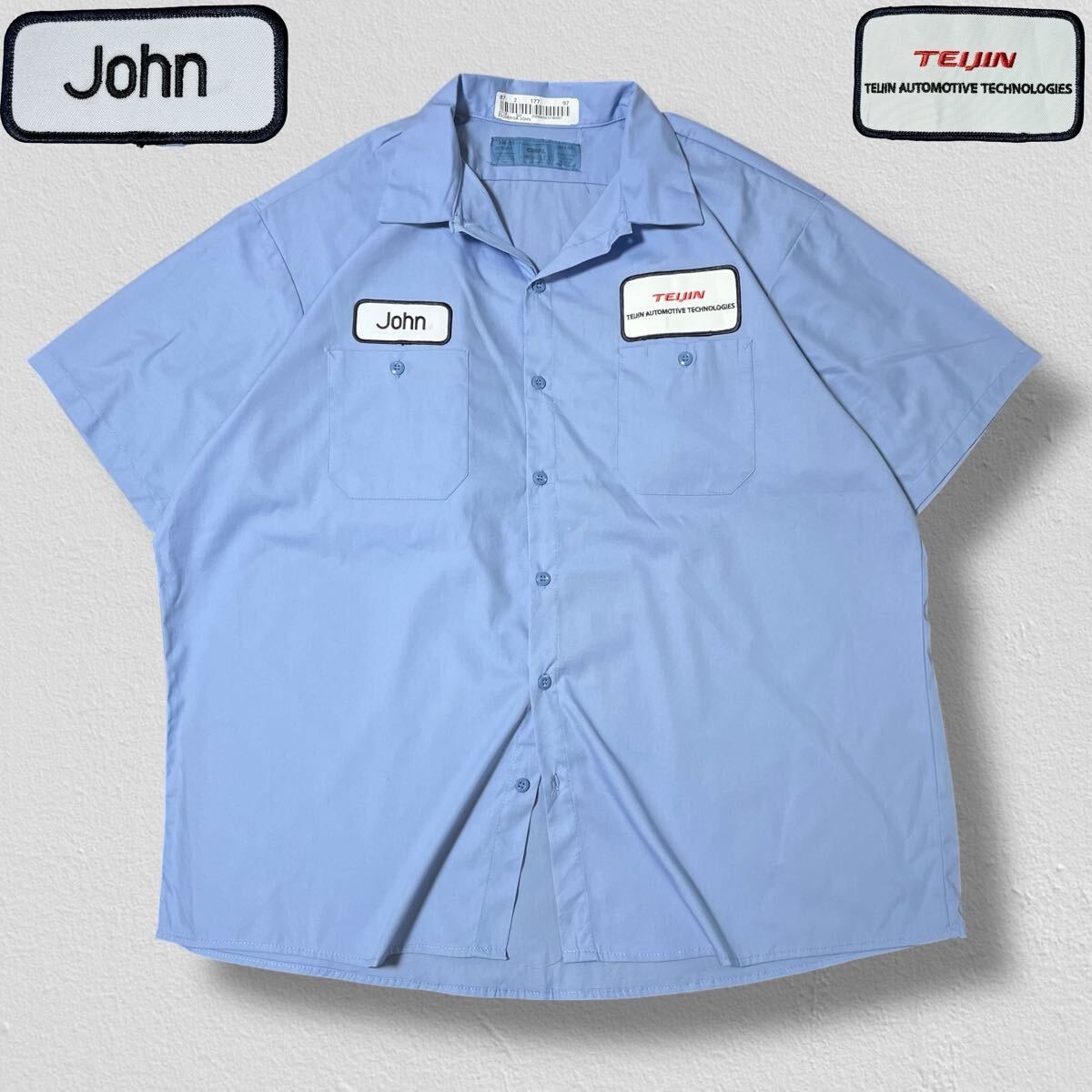 CINTAS 半袖ワークシャツ ワッペン TEIJIN John ライトブルー 2XL ●洗濯プレス済●ネコポス可● シンタス テイジン 古着/514