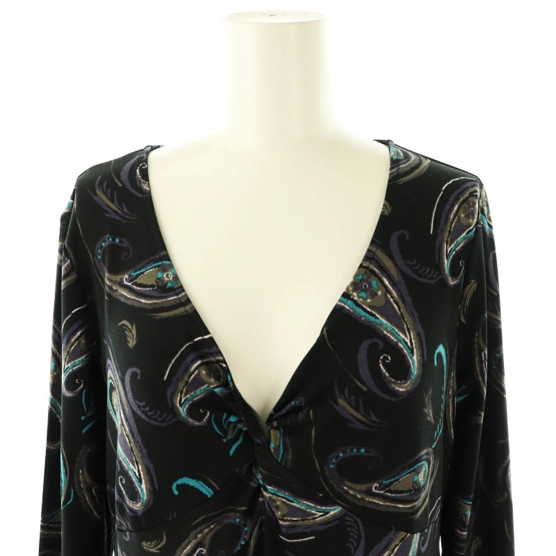 ローラアシュレイ LAURA ASHLEY ペイズリー柄 Vネック ロングスリーブ ワンピース ミモレ 黒 ブラック /AT ■OS レディース