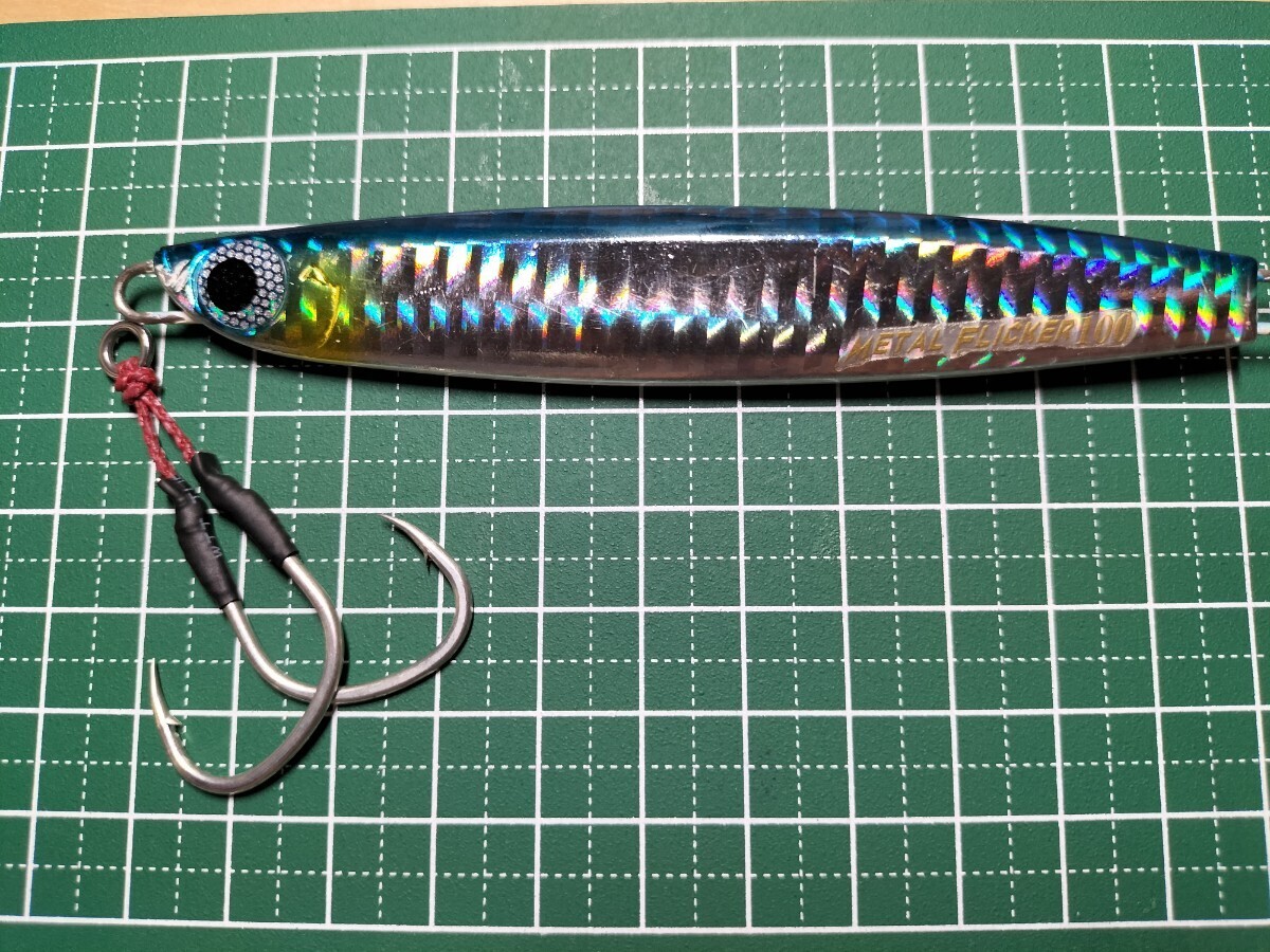 D-stream、GUN,Sフック2/0で作成しましたジギング用、ツインアシストフックです。使用組糸はVARIVASアシストライン25号、長さは約1㎝です。