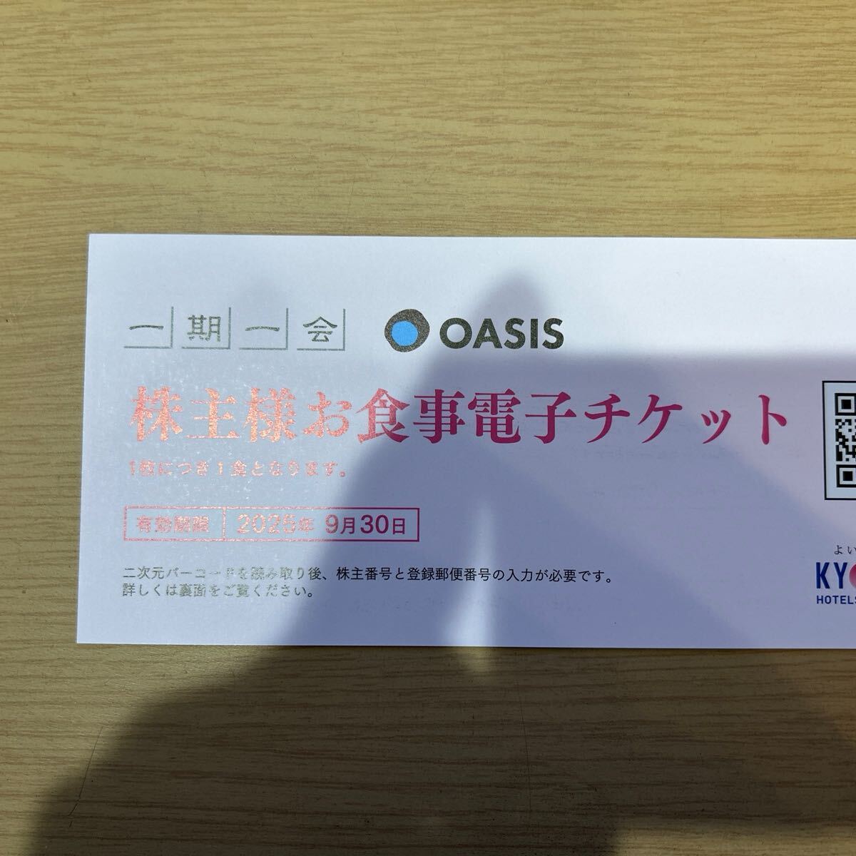 共立メンテナンスの株主優待「株主様お食事電子チケット」1枚です。