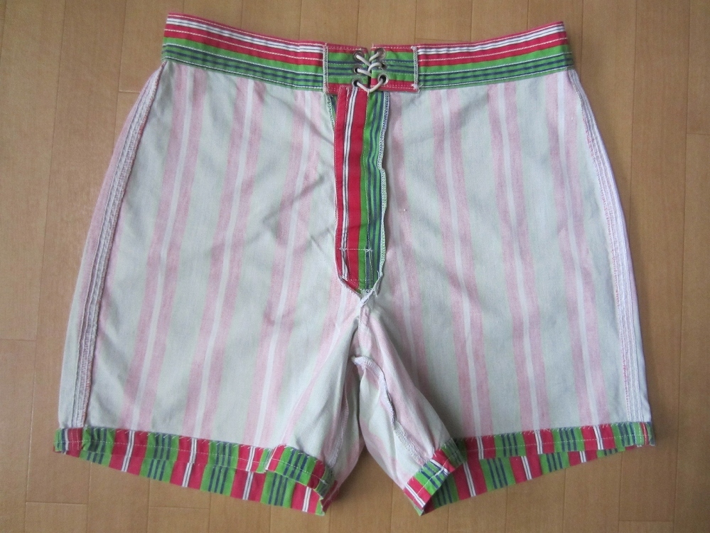 90年代頃にリリースされた、〔J.CREW(ジェイクルー)〕の、台湾製〔オールド(Old/Vintage/ヴィンテージ/当時物)・巨人タグ・ストライプ柄・コットン・ボードショーツ〕になりますので、現在では大変希少かつ、極めて入手が困難かと思われます。