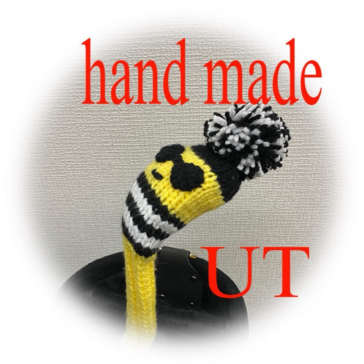 ゴルフニットヘッドカバーユーティリティ用ハンドメイド  フェイス 黄色