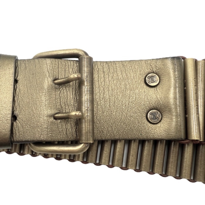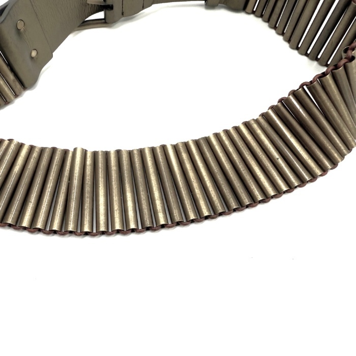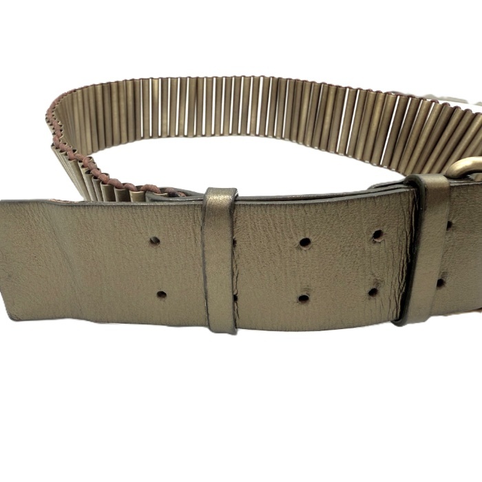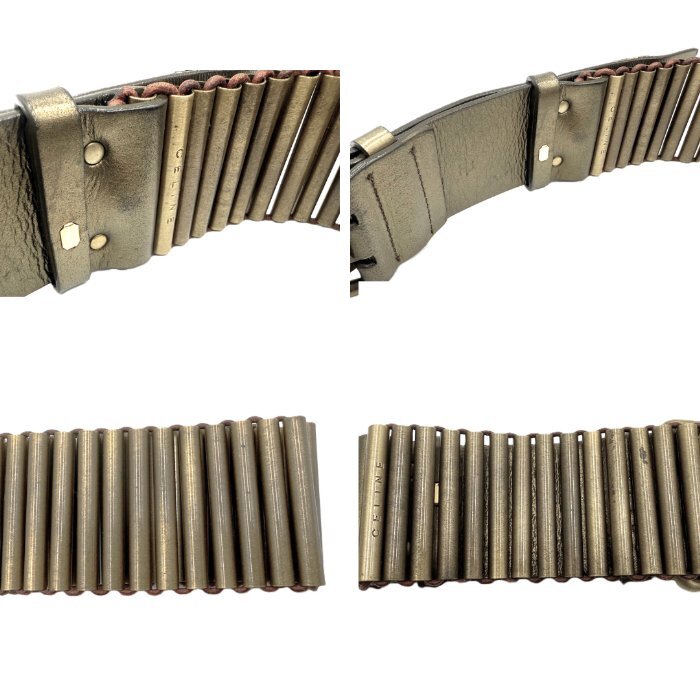 【コメント】 アーミースタイル調のガンベルトです。重量感もありかっこいい印象。レザー部分にシワ感、金具部分に若干の傷がありますが、気になる汚れはなく全体的に綺麗なお品物です。 |