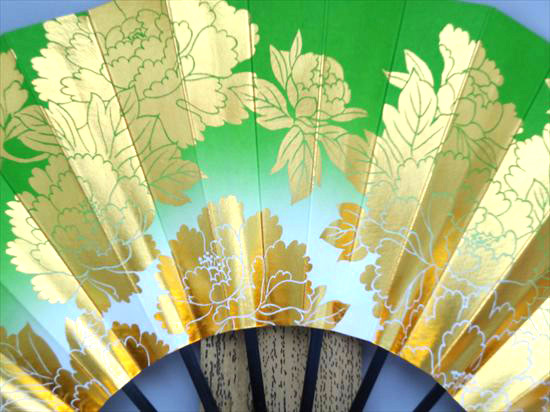 舞扇子 A1895 金箔牡丹 若草天ぼかし 【箱なし】