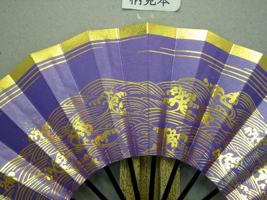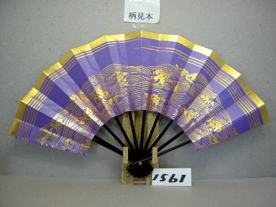舞扇子 A1561 金箔天金&波 紫シルバー引き 【箱なし】