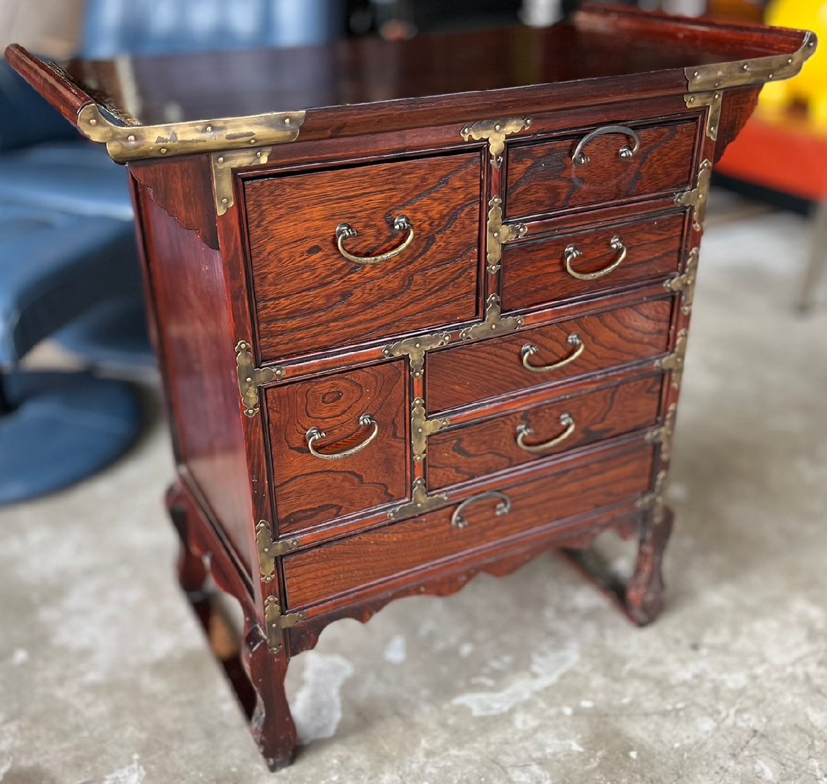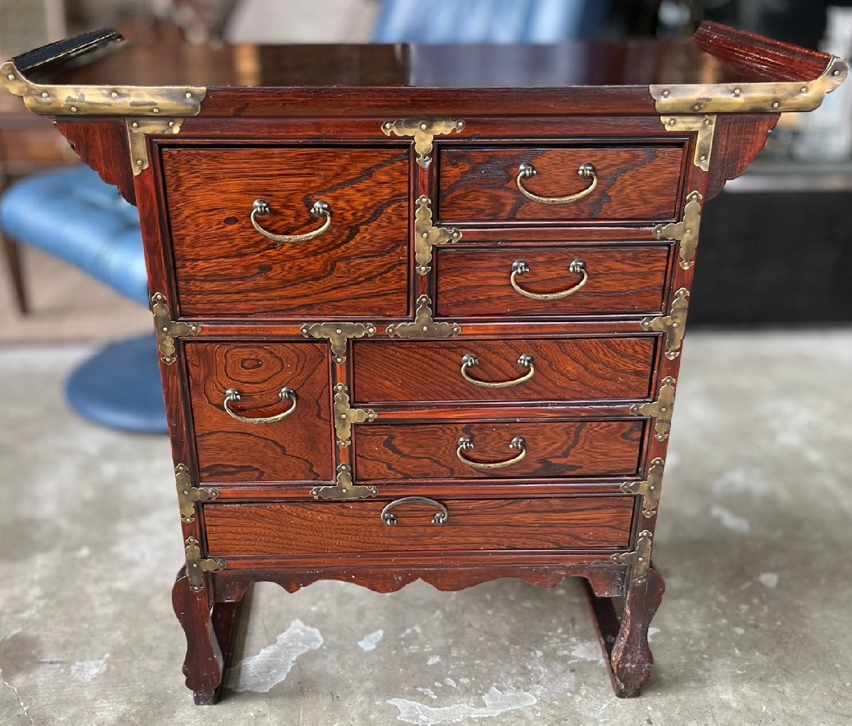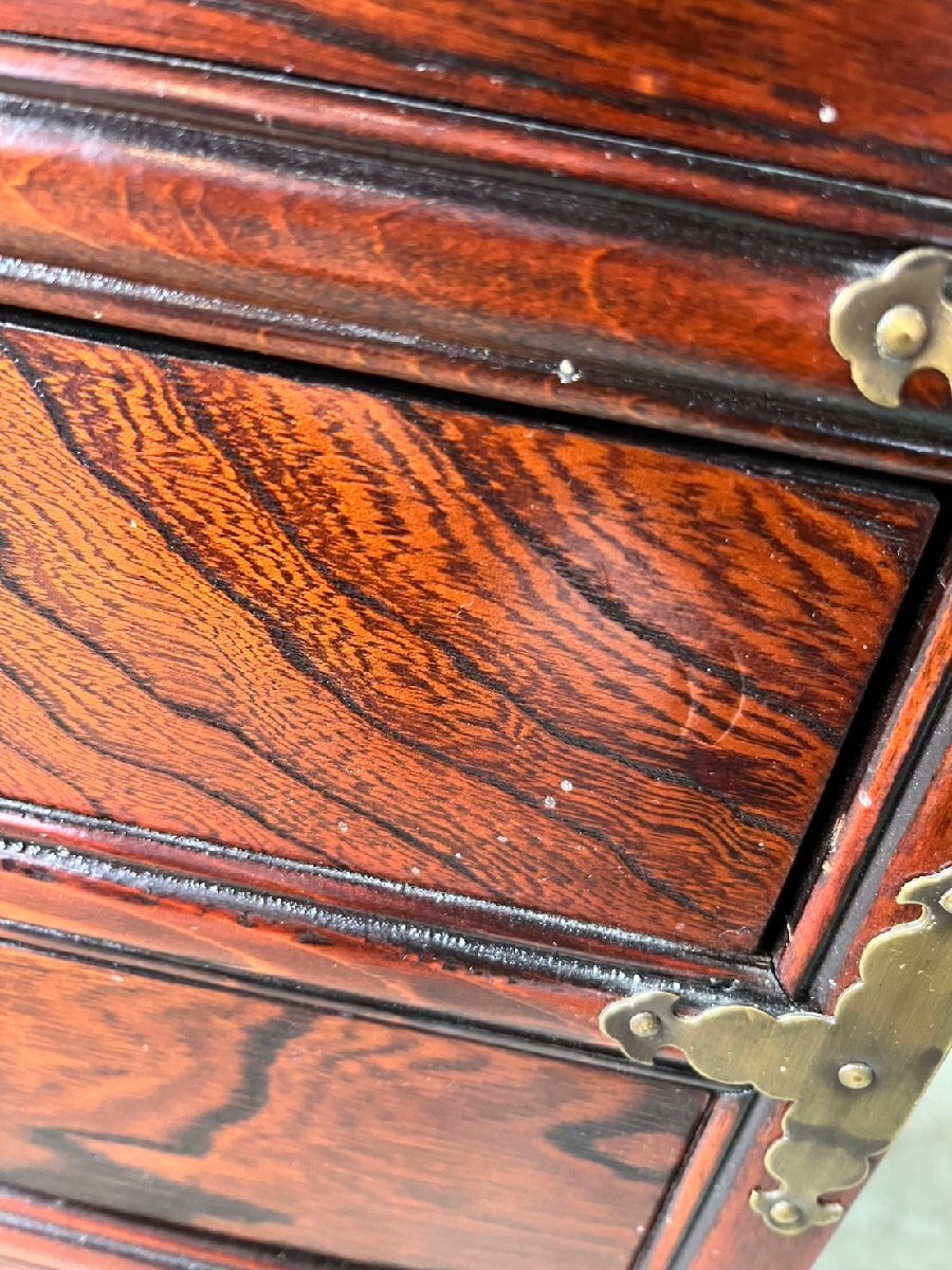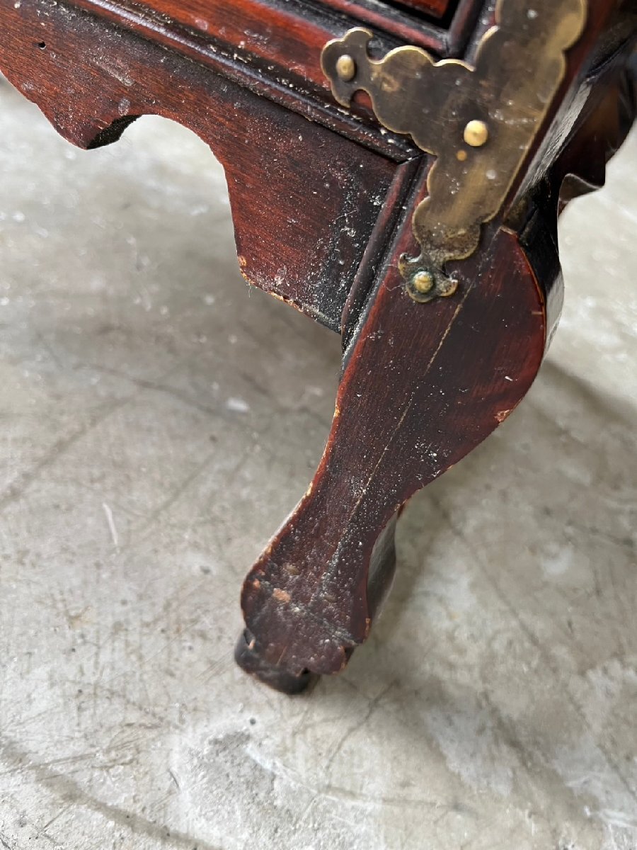 ★ヴィンテージ! アンティーク家具! 李朝家具 小型キャビネット 真鍮金具 脚付き 引き出し 古民具 サイズ(約)68×35.5×高69.5㎝