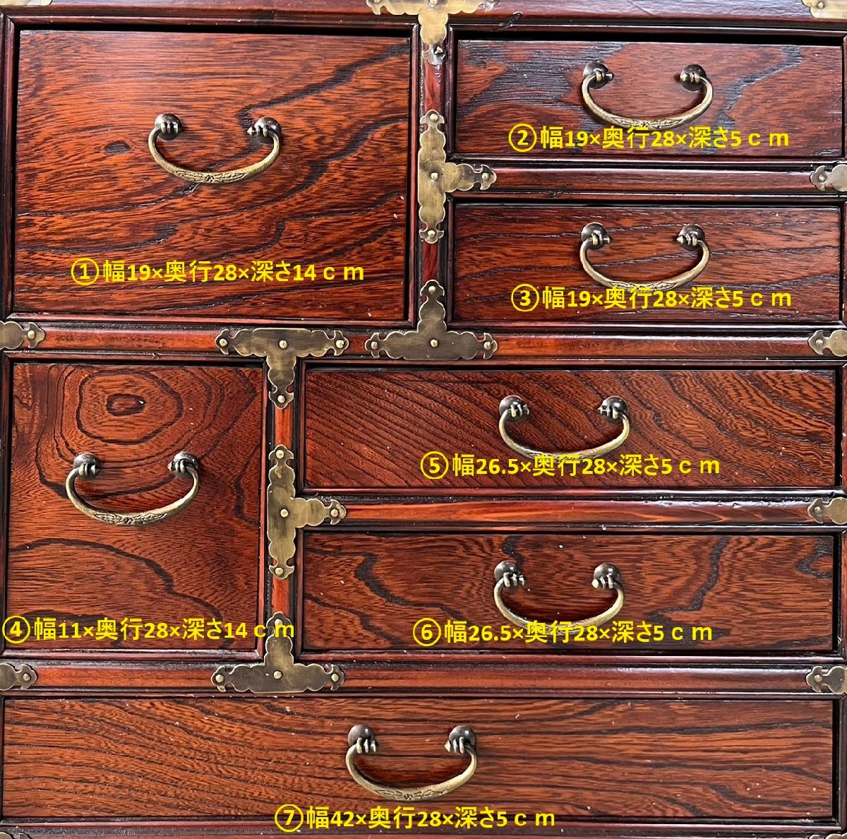 ※サイズはタイトルに全長を記載し引出しの各サイズは画像にて掲載しております。