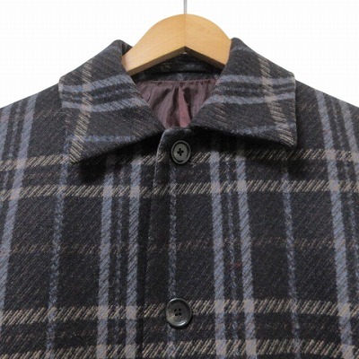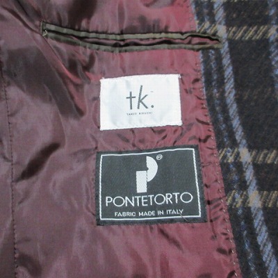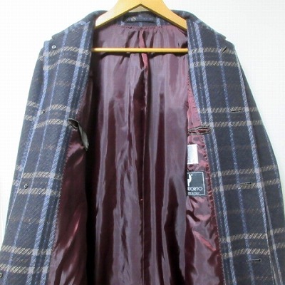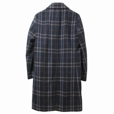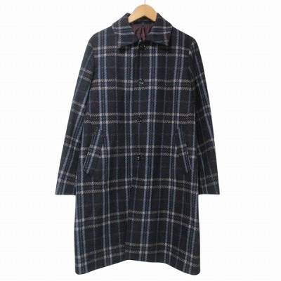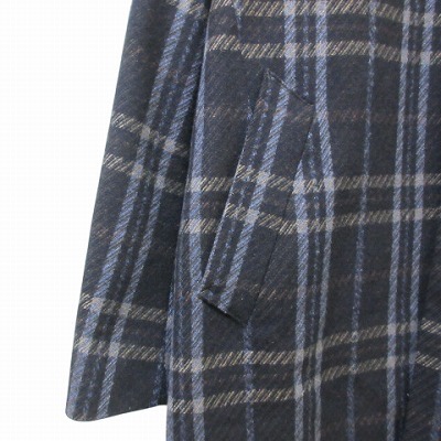 タケオキクチ TAKEO KIKUCHI TK 美品 PONTETORTO チェックメルトンステンカラーコート ロング M ネイビー系 X メンズ