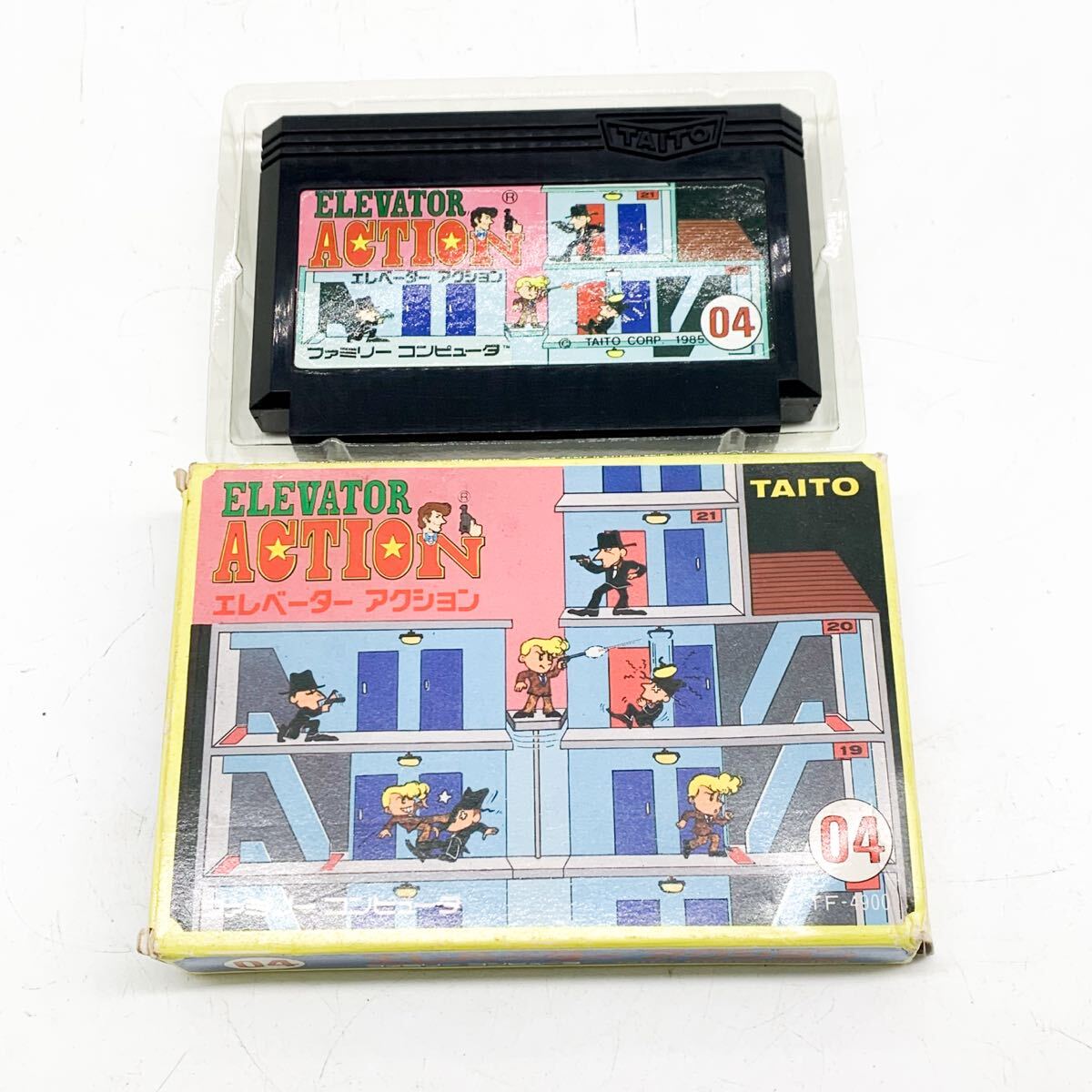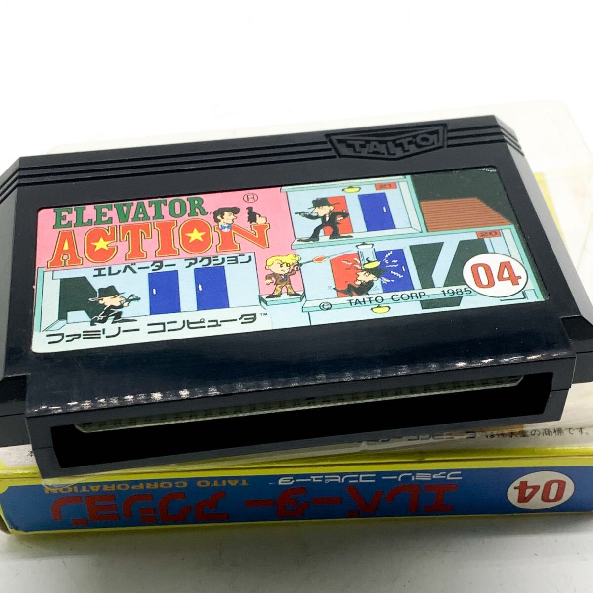 TAITOより1985年発売、ファミコンソフト「エレベーターアクション」の出品です。
