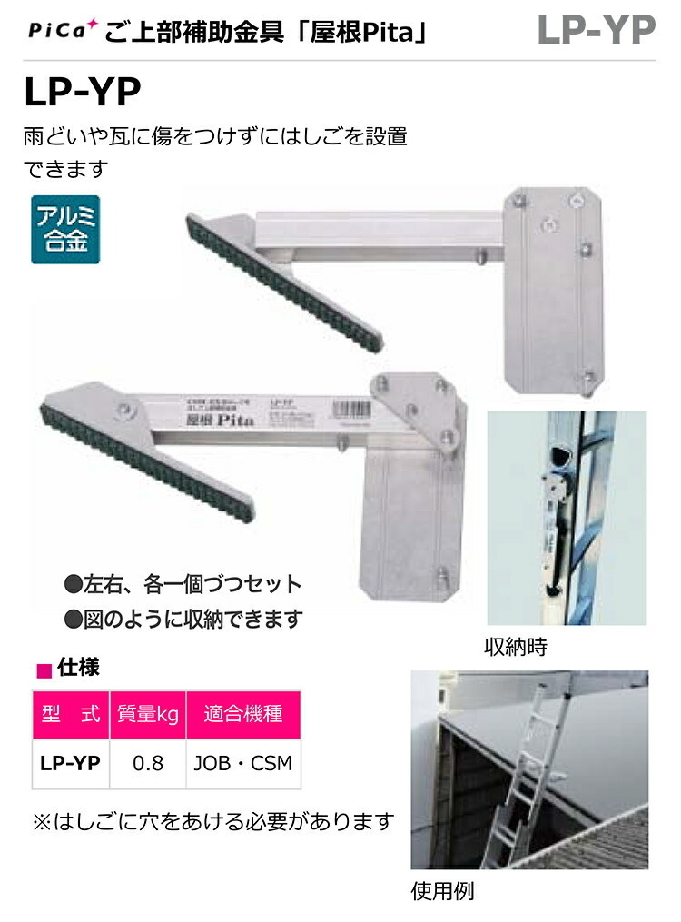 ピカ コーポレイション はしご上部補助金具 屋根Pita(左右、各一個づつセット) LP-YP ※こちらの商品は、「代金引換」支払を ご利用いただけません。