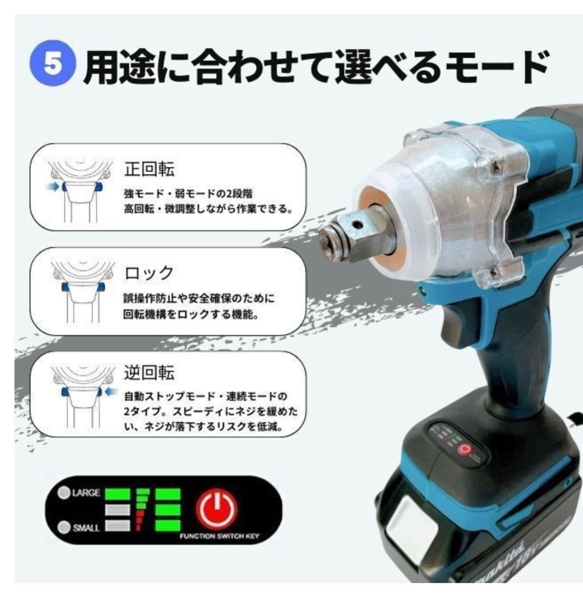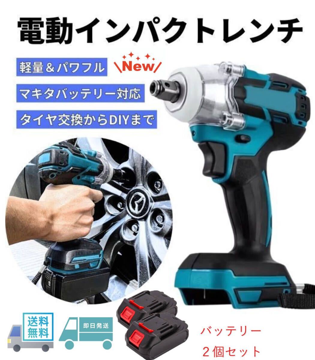 インパクトドライバー 充電式 インパクトレンチ タイヤ交換 370N ブラシレスモータ搭載 コードレス バッテリー2個セット18V マキタ 互換