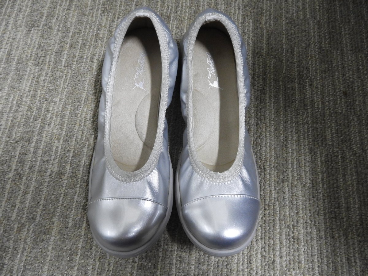 新品未使用 ラックラック 空飛ぶパンプス エレガントバイカラー シルバー 24cm 日本製 軽量 健康