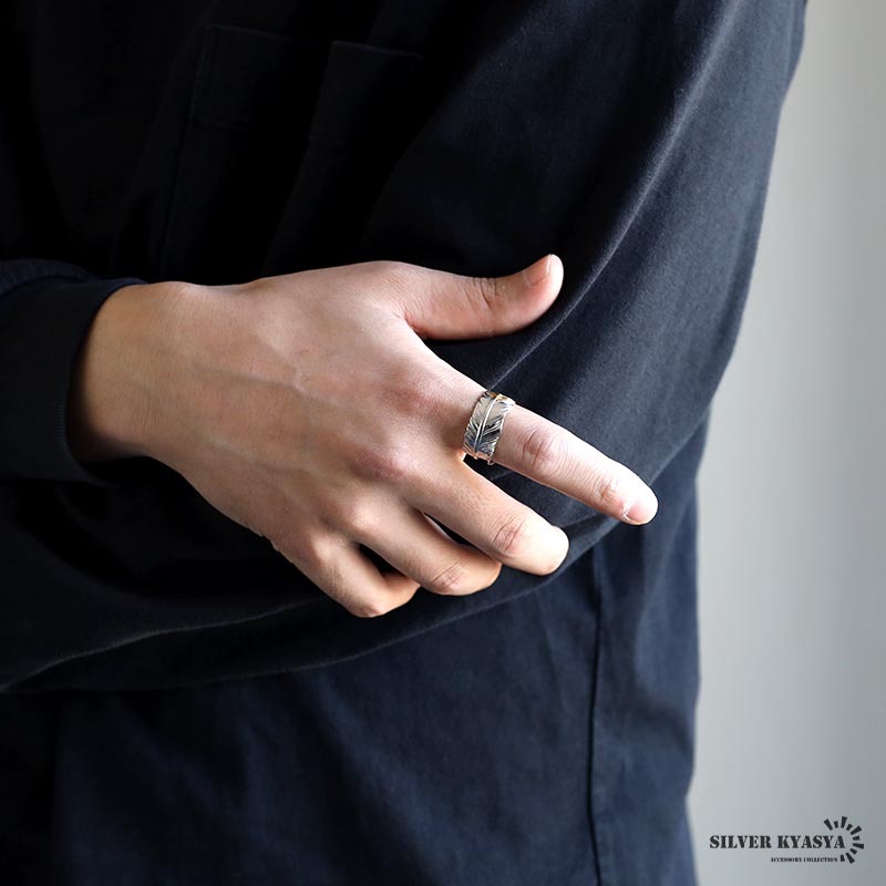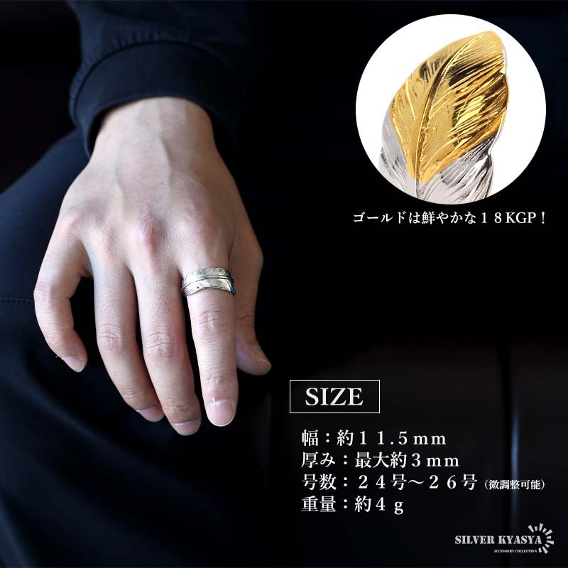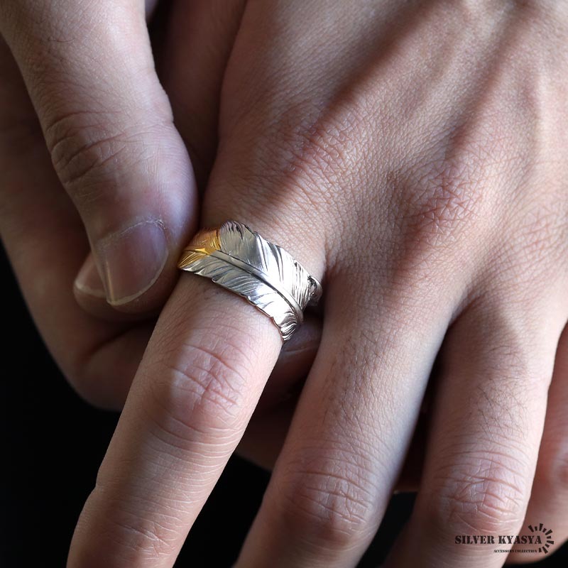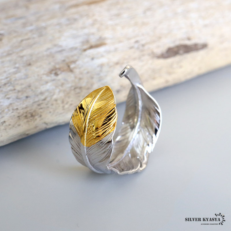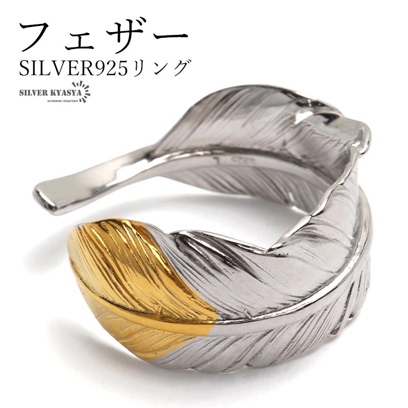 シルバー925 フェザーリング 羽根リング シルバーリング 先金 イーグル インディアン ゴールド 18KGP メンズ 金アレ対応