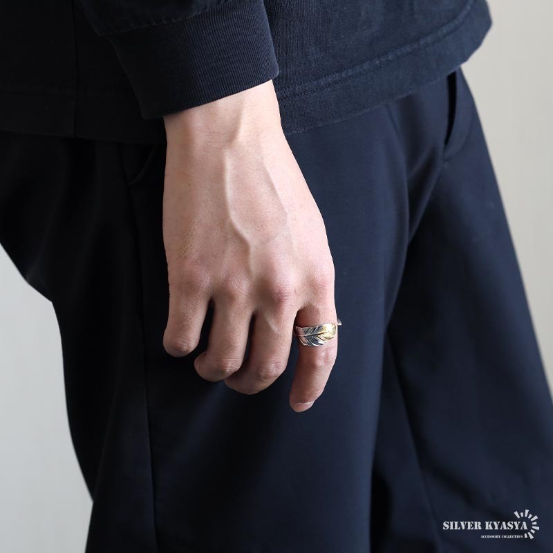 フェザーモチーフをデザインしたオープンリング。繊細に作り込まれた羽根が魅力的な逸品。先金は18KGPを施しており、鮮やかなゴールドがアクセントに◎幅広いファッショに馴染んでくれるマストアイテムです。