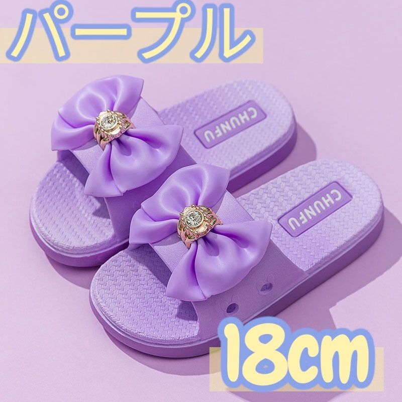 キッズサンダル 子供サンダル 女の子 軽量 防水 夏 海 プール 水遊び 川遊び 室内履き 滑りにくい サマーシューズ リボンサンダル かわいい おしゃれ 紫 ゆめかわ ガーリー キッズ靴 子供靴 サンダル18cm