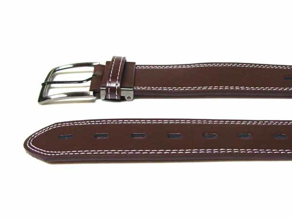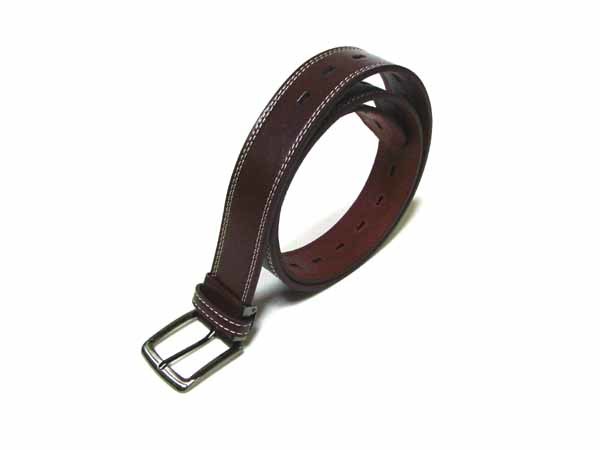 牛革使用 エンドレスピンホール ダブルステッチ レザー ベルト ブラウン 男女兼用 フリーサイズ 【 新品未使用 】 ◆ アウトレット ◆