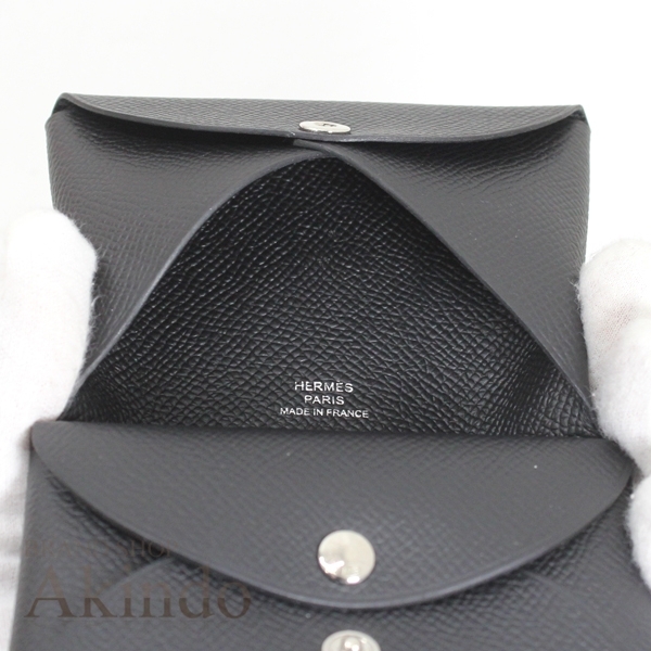 | エルメスのコインケース付きカードケース、「カルヴィ デュオ」です。 折りたたんでホックで留めるコンパクトなサイズです。 一番人気のカラー「ブラック」です。 新品商品です。 詳細は写真をご覧ください。 T5796 | |