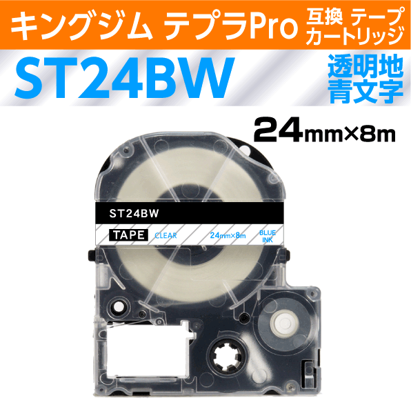 キングジム テプラPro用 互換 テープカートリッジ ST24BW〔ST24Bの強粘着〕24mm 透明地/青文字