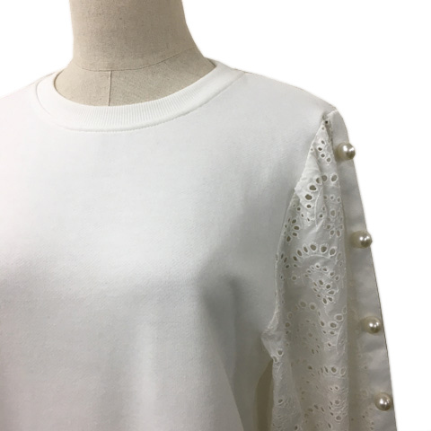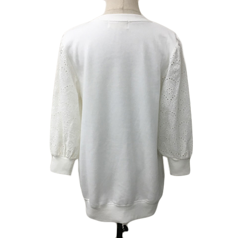 レディ Rady トレーナー スウェット ラウンドネック プルオーバー パール レース 切替 無地 七分袖 M 白 ホワイト レディース