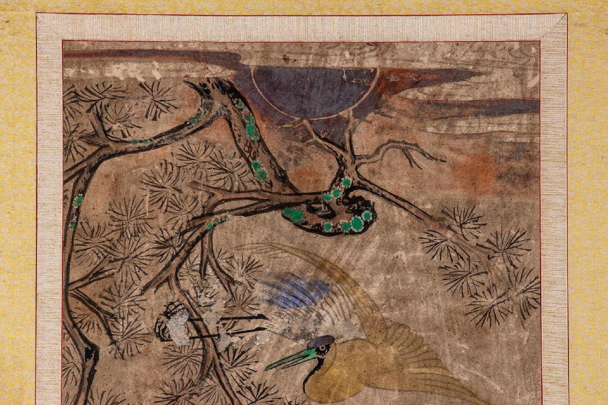 【絵画】 李朝民画 紙本肉筆 松鶴図 19世紀 額装 E1952L 朝鮮古美術 朝鮮民画 リビング インテリア アート