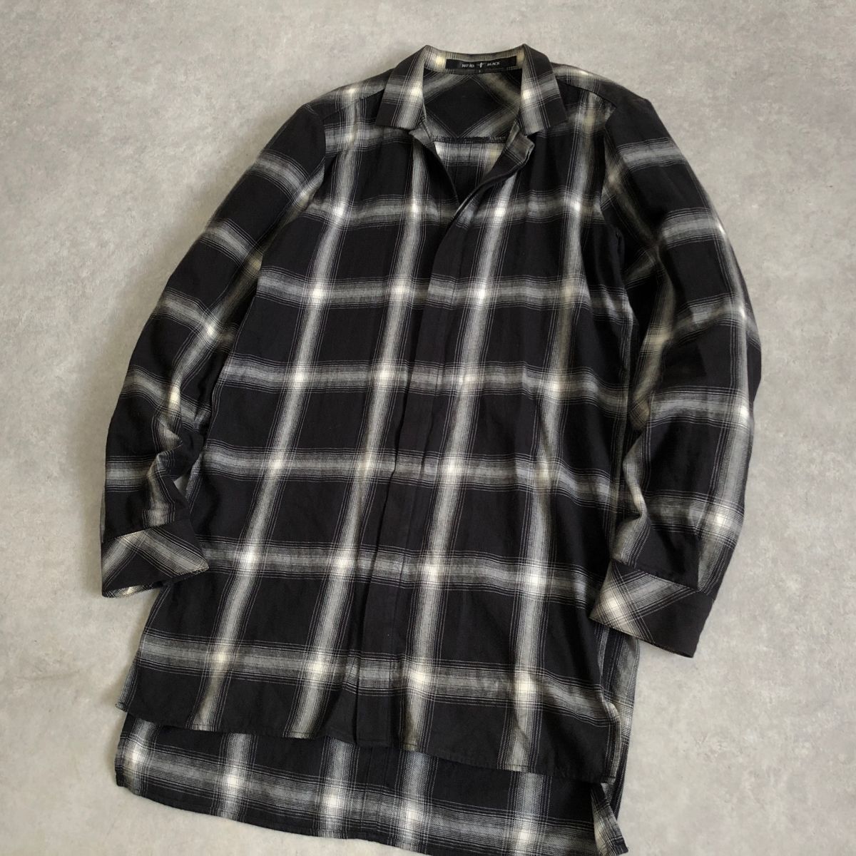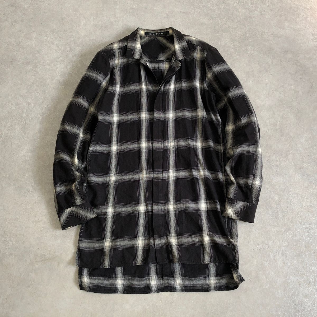 NO ID. BLACK●オンブレチェック柄 ロング丈シャツ●ノーアイディー