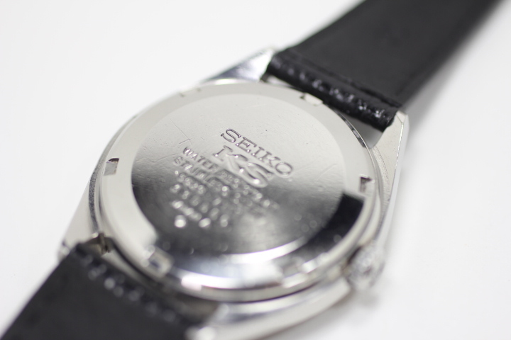 【KS56解説】 KSとGSの両巨塔フラッグシップモデルに用いられた名機キャリパー56搭載。スペックアップされた56キャリパーはクロノメーター取得も可能とし、クオーツに負けないセイコー渾身の名機で絶大な人気を博しました。 信頼の諏訪セイコー社製で裏面には諏訪セイコー社のマークも見られます。 WATER RESISTANT機能も有しています(現在は保証いたしません)。