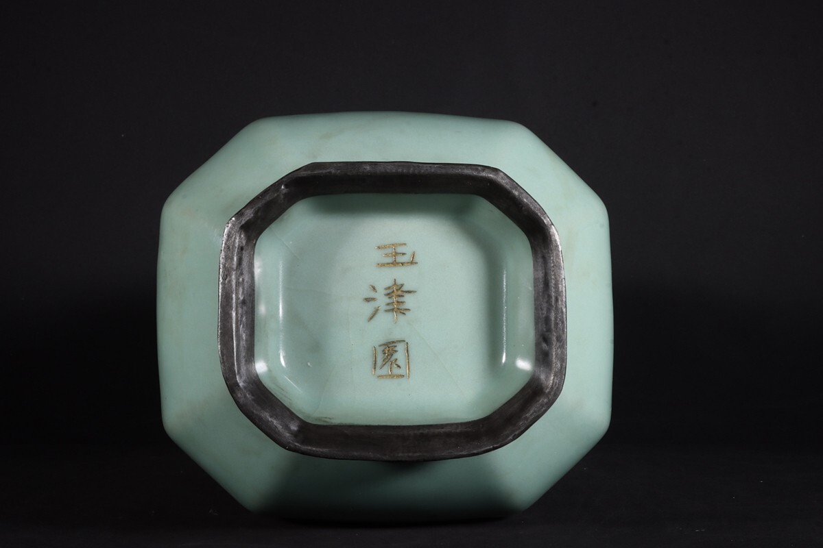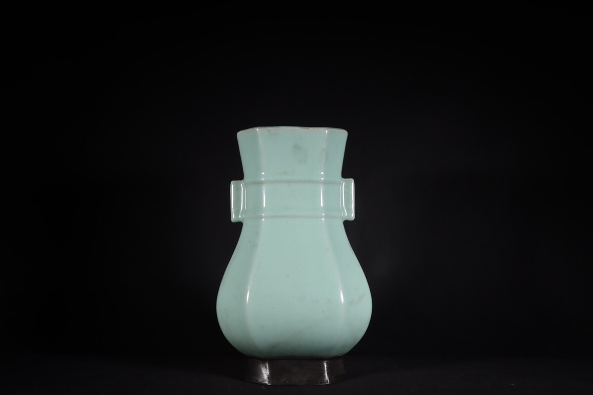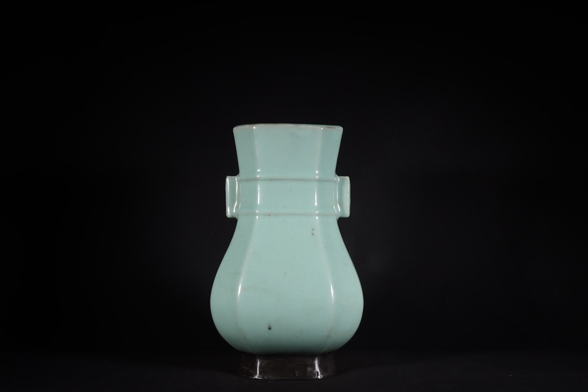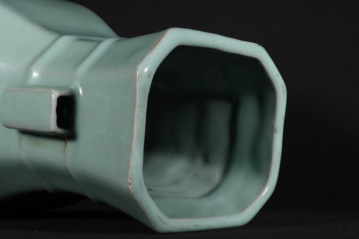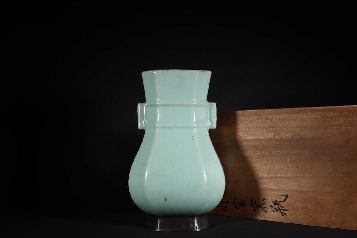 「宋 官窯 陶磁器 粉青釉 八方 貫耳尊 (玉津園)」染付 置物 擺件 古賞物 中国古美術 旧蔵出