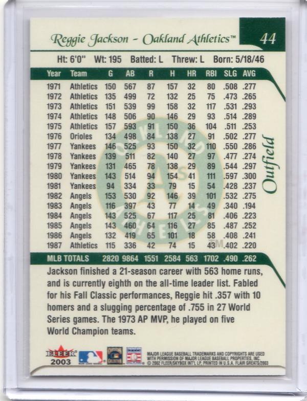 | ★☆レジー・ジャクソン カード Vol.96 2003FLEER アスレチックス☆★ | |