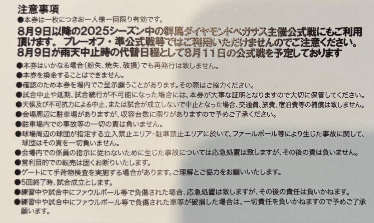 8月9日以降の2025シーズン中の群馬ダイヤモンドペガサス主催公式戦にもご利用頂けます。